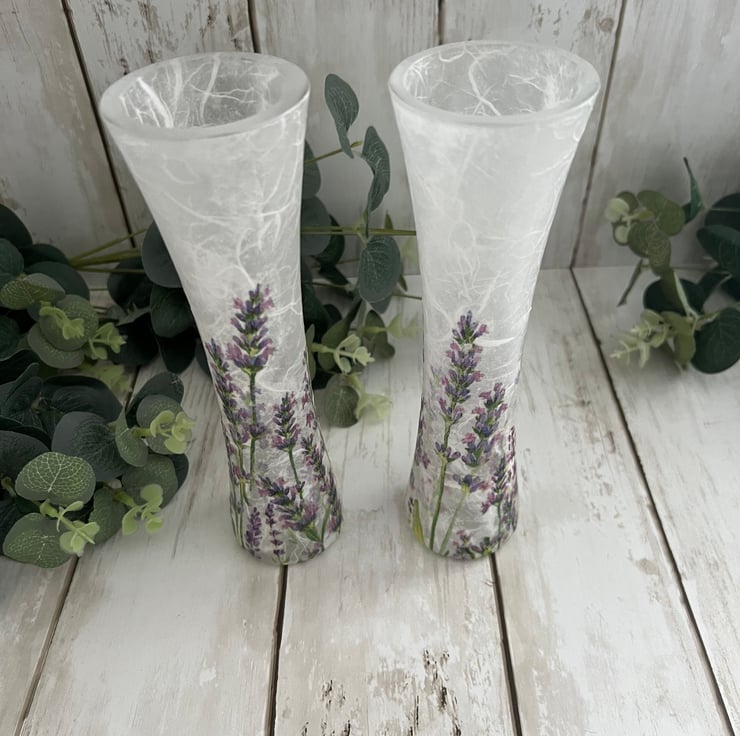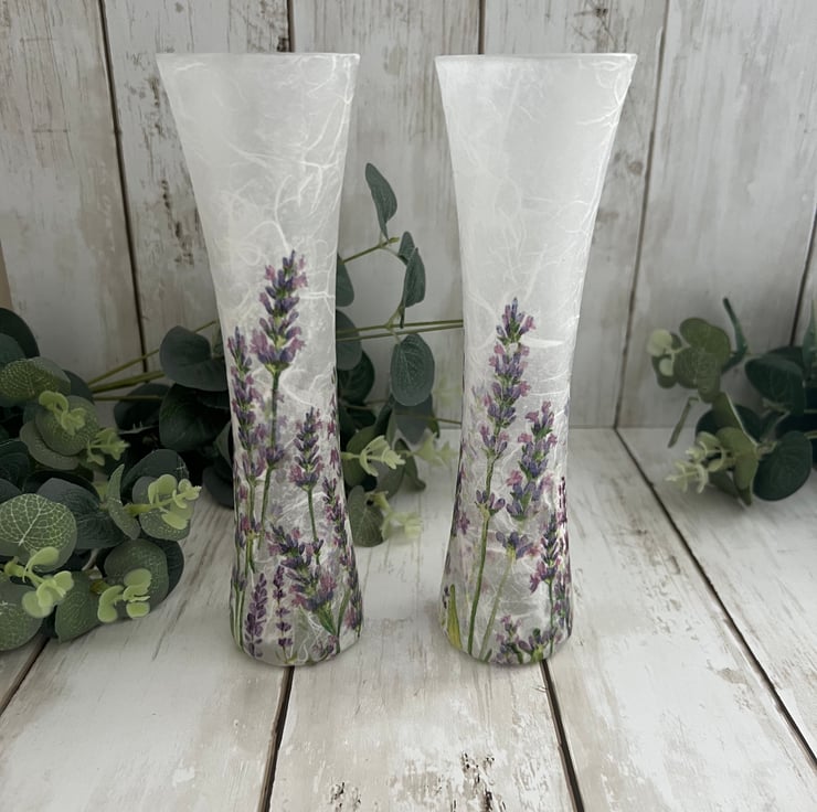 Decoupage Upcycled Slim Glass Vase: Lavender, Cottage Style