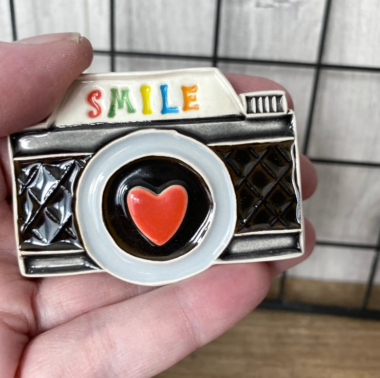 This little ceramic magnet is my own design which I have carved and then stamped into the earthenware clay. Bright detailing has been added during the glazing stage and fired twice in an electric kiln.