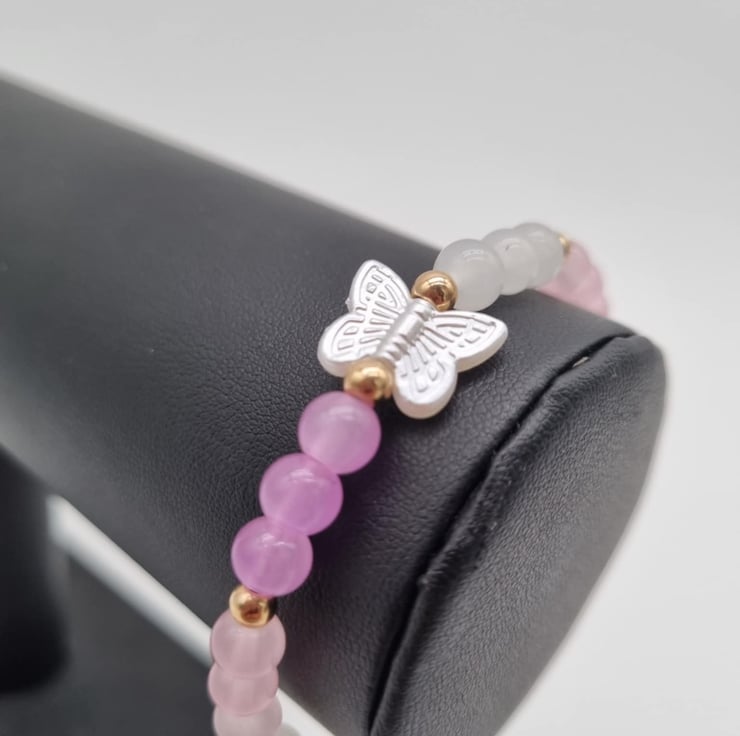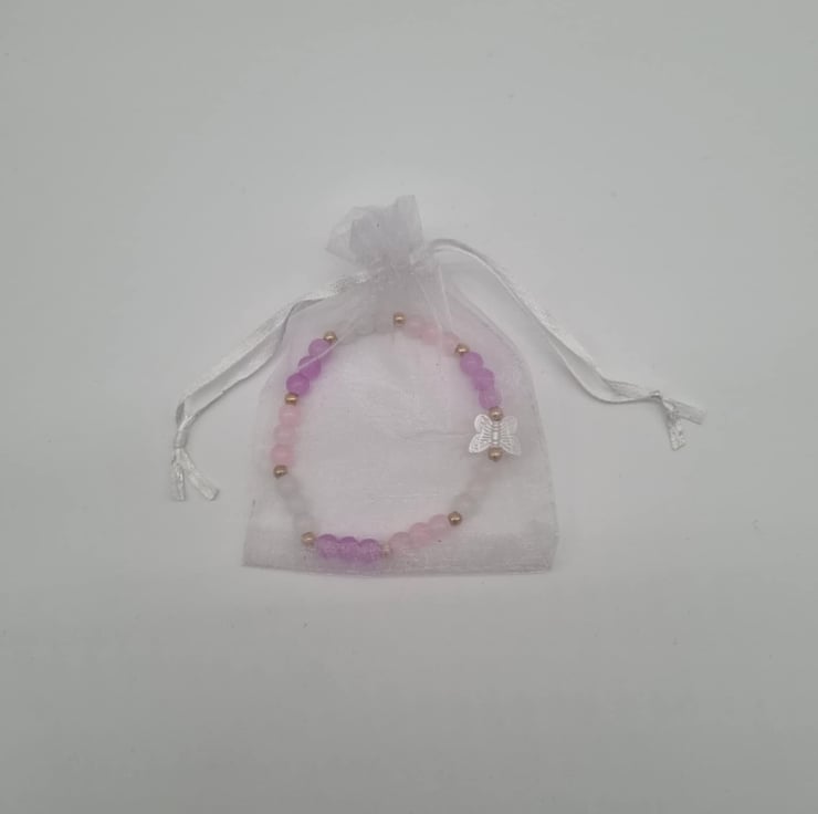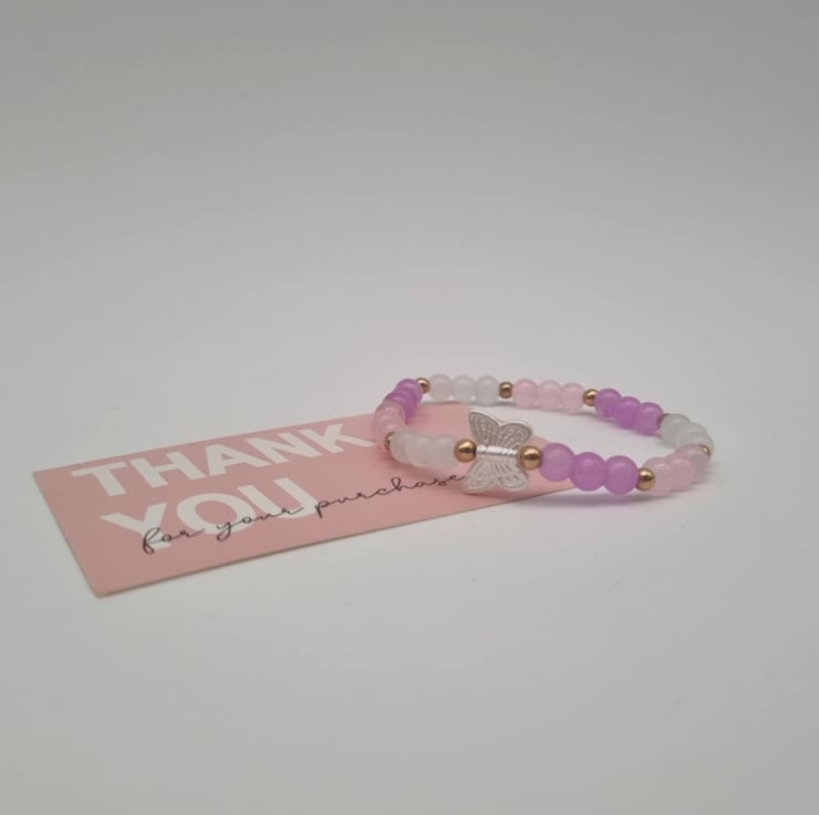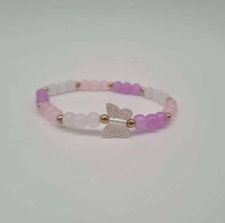 Delicate charm meets dreamy colours in this handcrafted beaded bracelet. It features rose gold accents and a pretty butterfly centre - piece. It’s perfect for adding a soft, elegant touch to your everyday style.