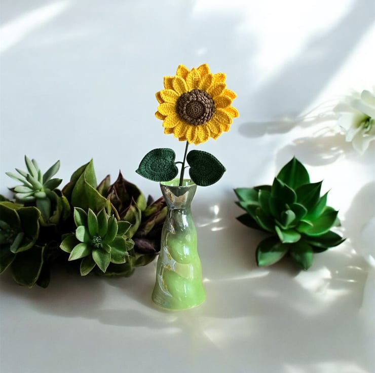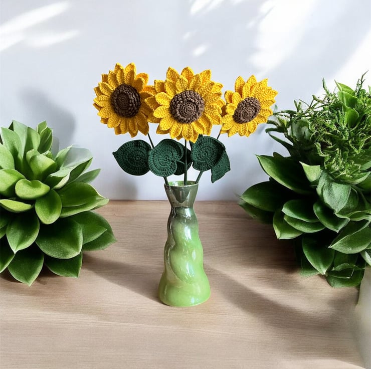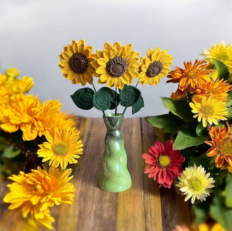 Add a touch of lasting warmth and cheer to any room with our beautiful handmade crocheted sunflowers which are everlasting too. Each one is designed to brighten your space year-round.