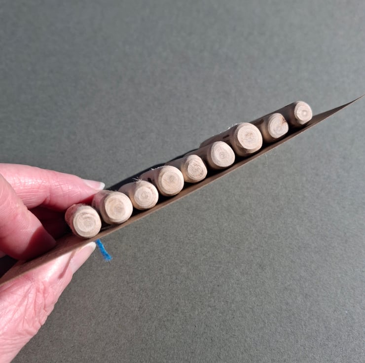 The buttons are around 1/4" - 3/8" across and 1 3/4" long with a single large hole. The ends have been rounded and the buttons sanded smooth.