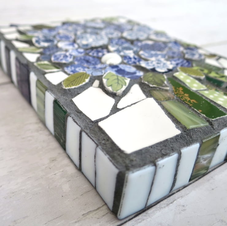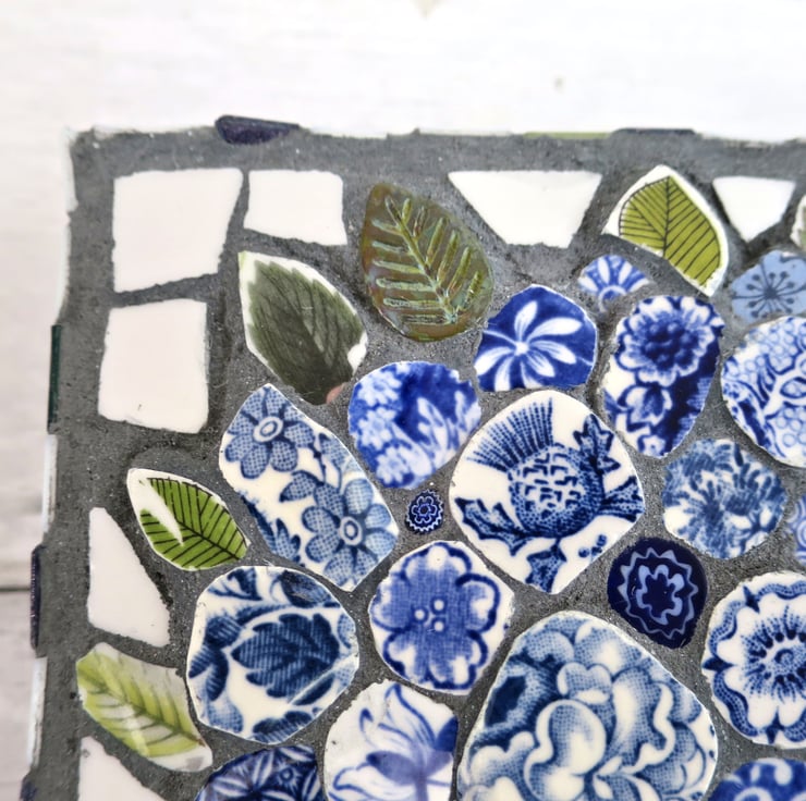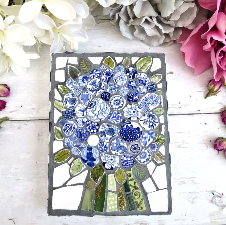 This one-of-a-kind mosaic bouquet is handmade using the picassiette technique—where once-loved vintage plates are broken, reimagined, and arranged into something beautifully new. Here, delicate blue and white china florals form a cheerful bunch of flowers, full of charm, texture, and a touch of nostalgia.