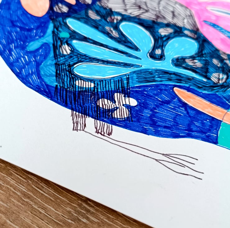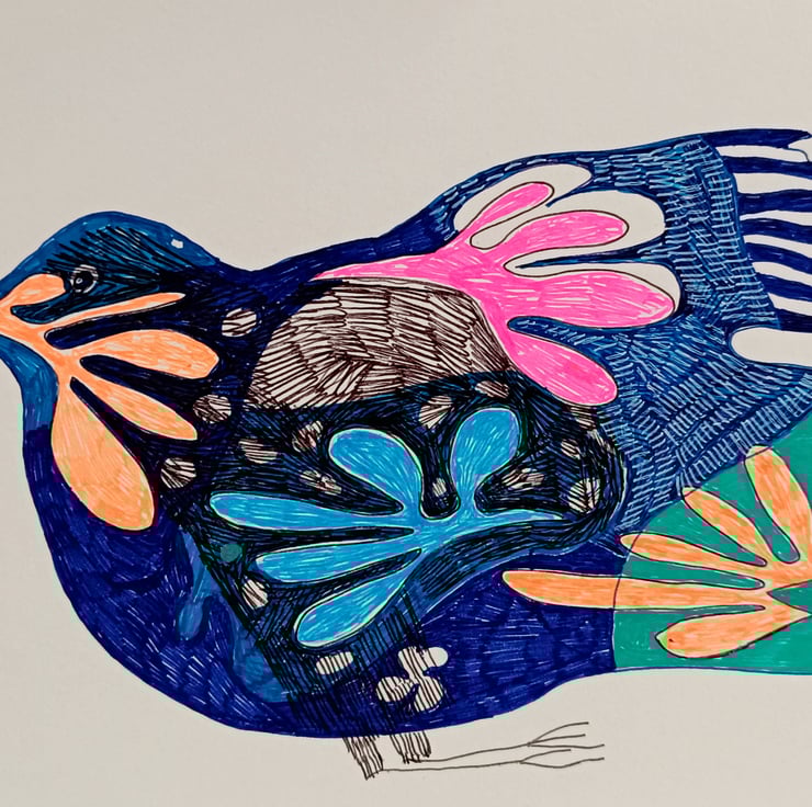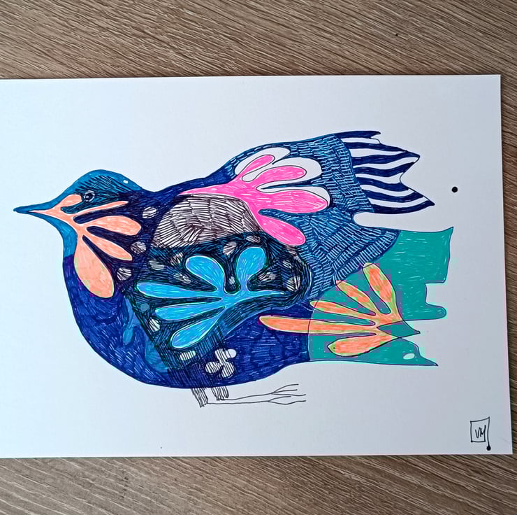It's a modern interpretation using bold and contrasting lines to convey the bird's essence. I use bold and bright colours to complement a birds form. Cheerful and playful to brighten up your space and mood.