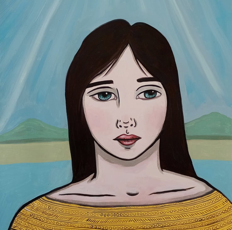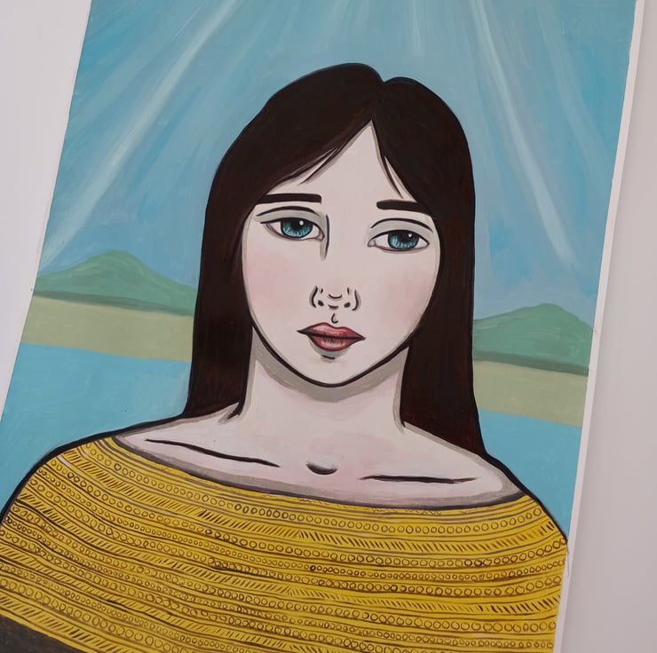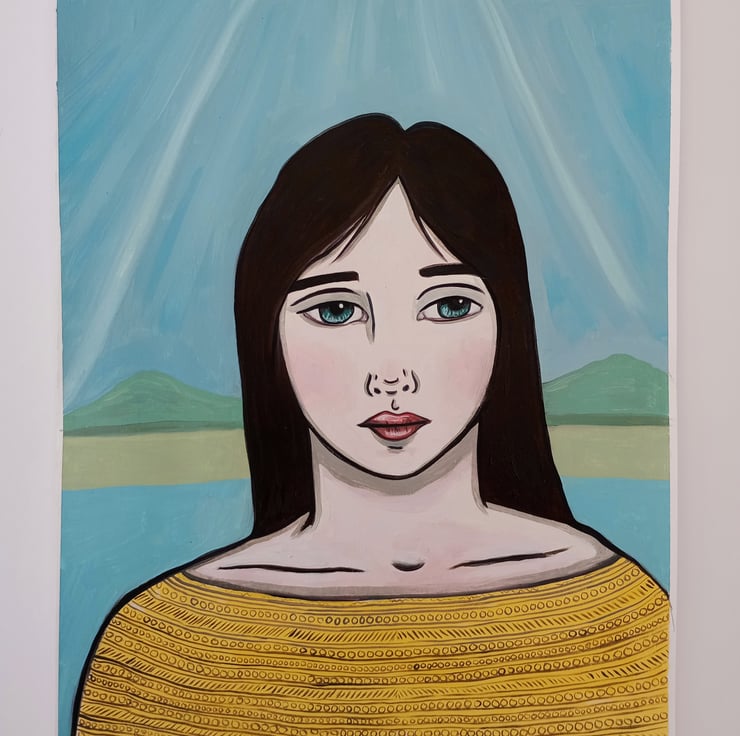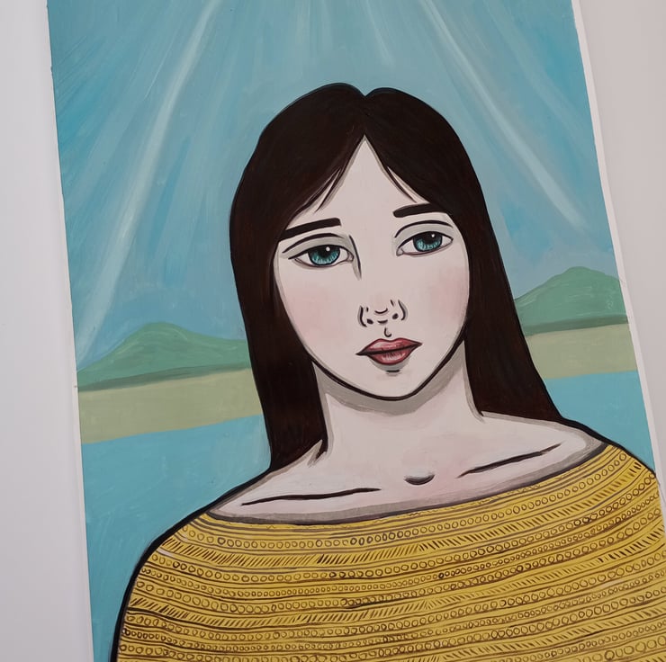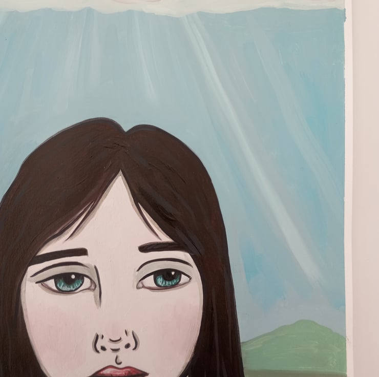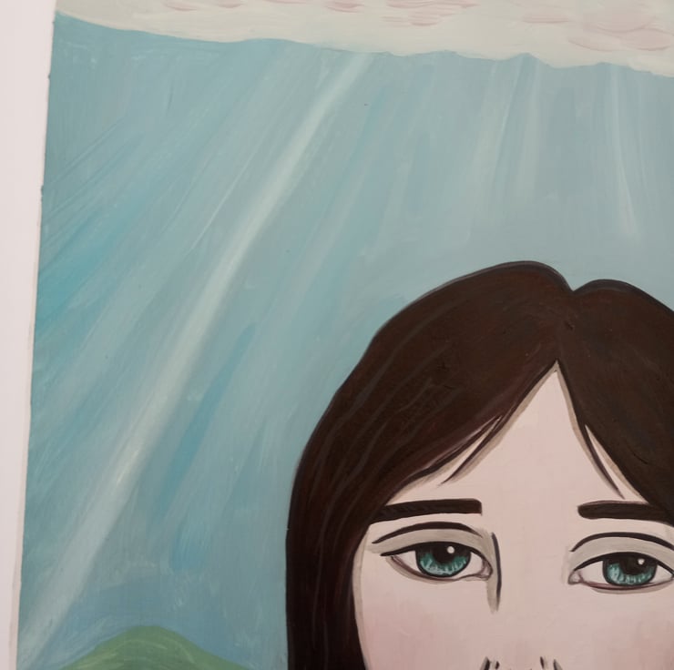 Original surreal oil portrait painting on paper.