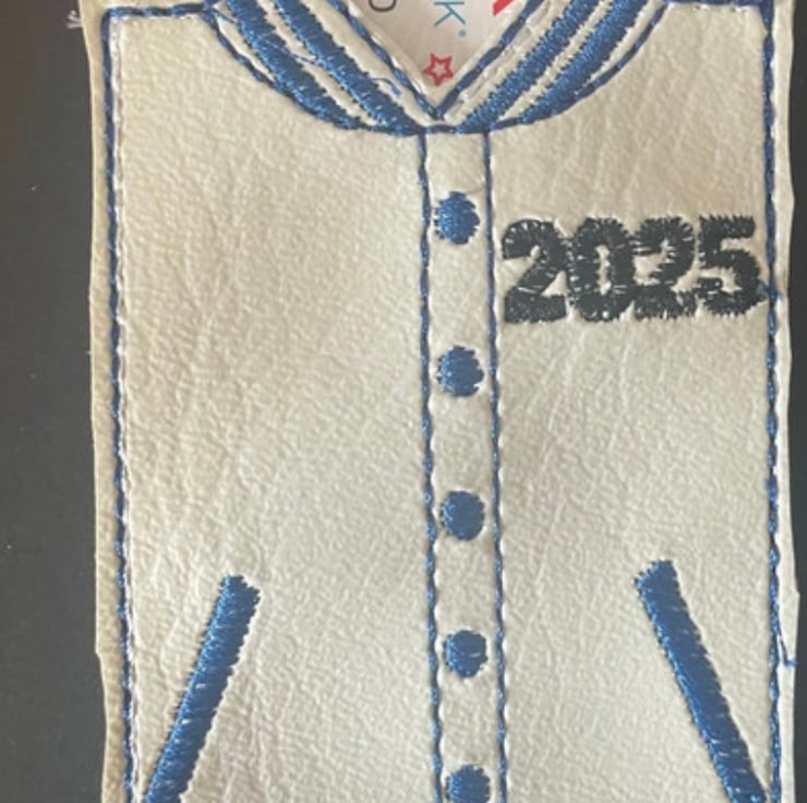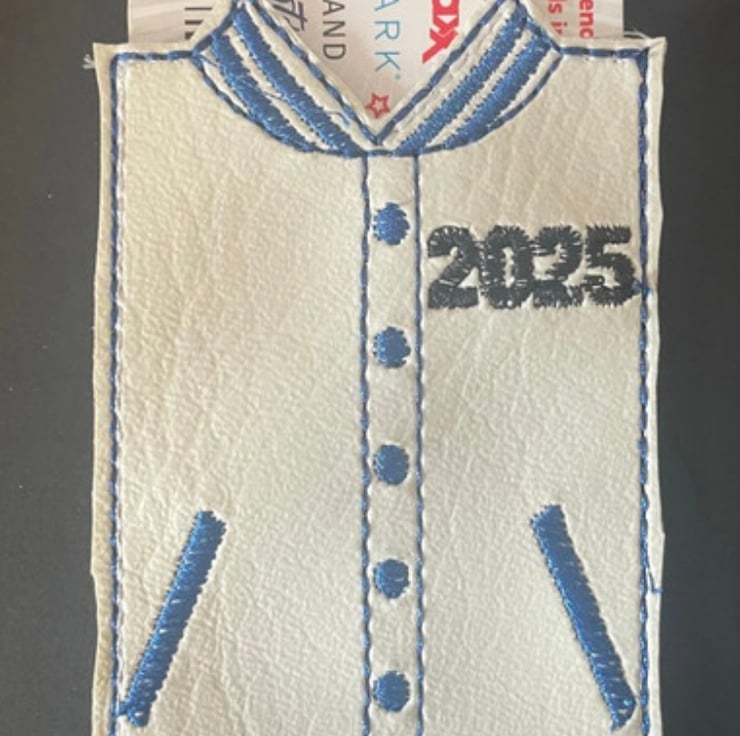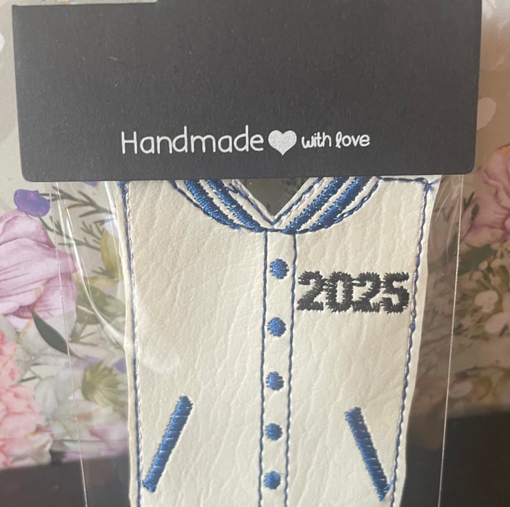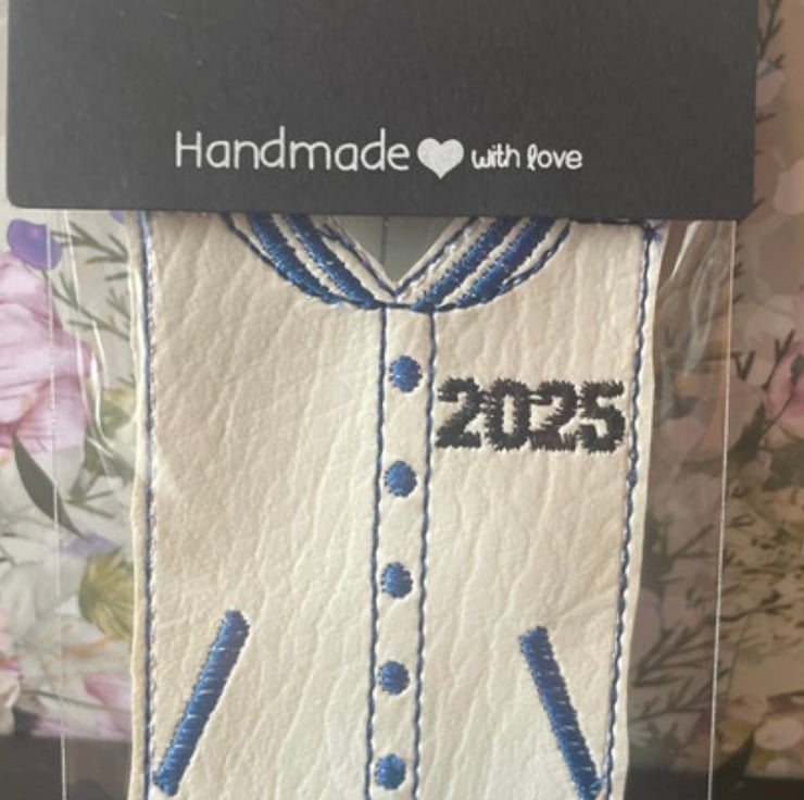 Made with faux leather and embroidered design.