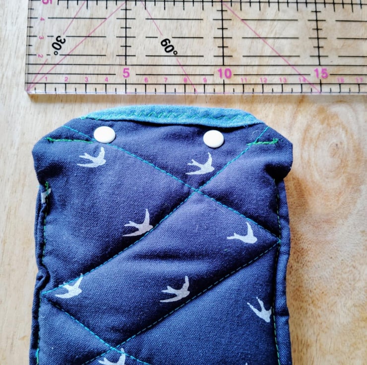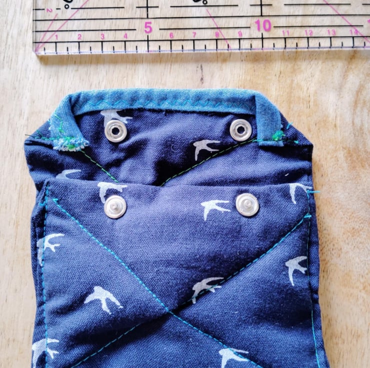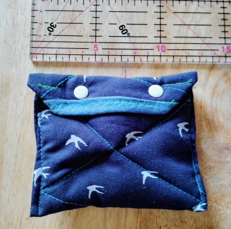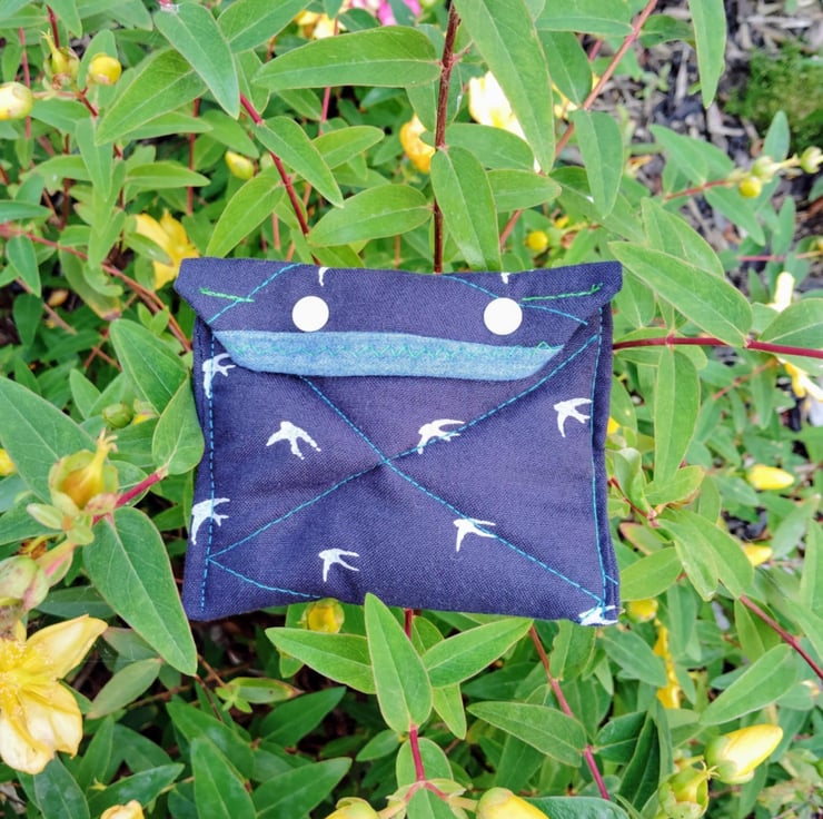 Blue and white bird fabric and popper opening unisex handmade purse quilted