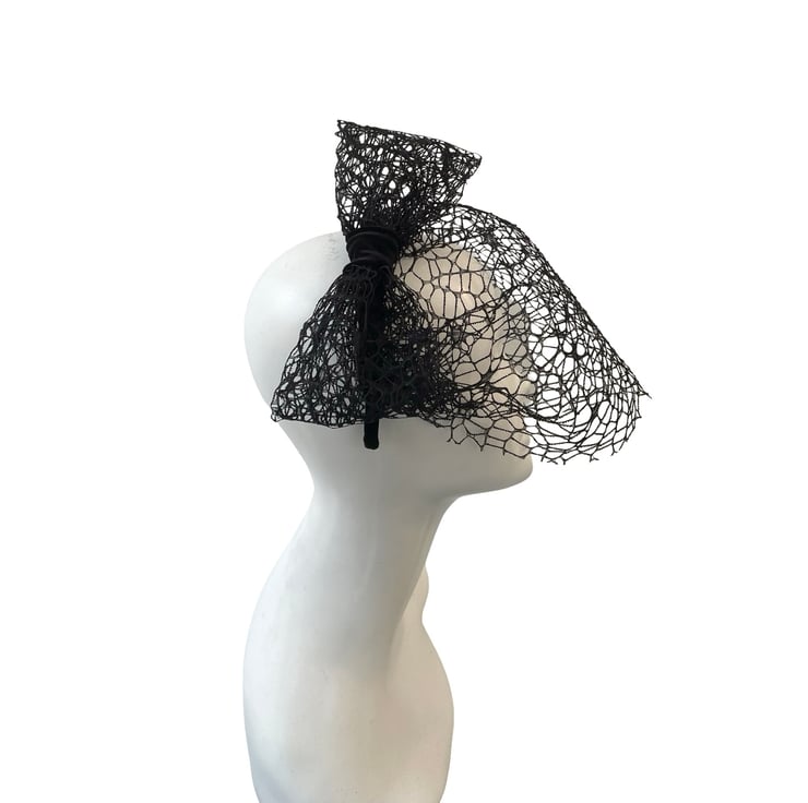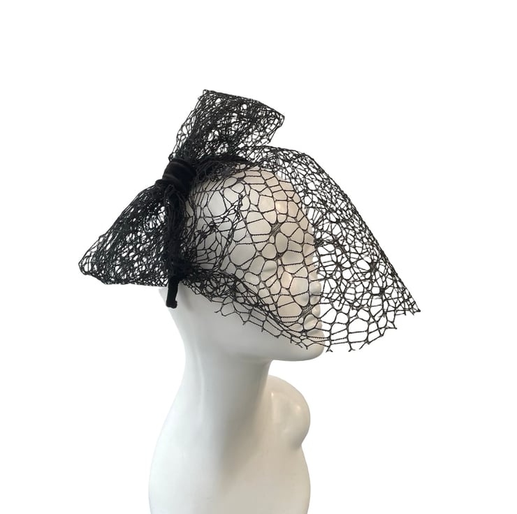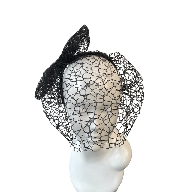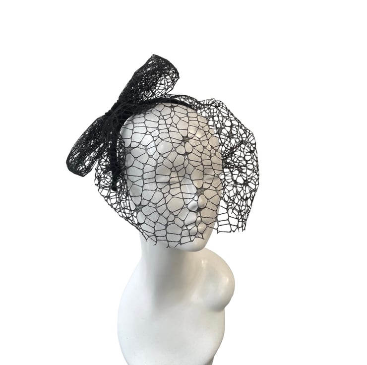 Classic birdcage veil in deep black, framing the face beautifully