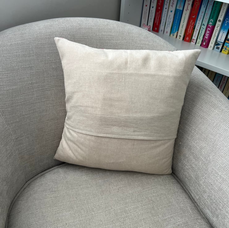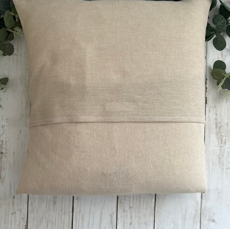 The cushion cover has an envelope style back and can be washed by hand or on a very low wash setting and then ironed flat. The pattern may vary due to run of fabric.