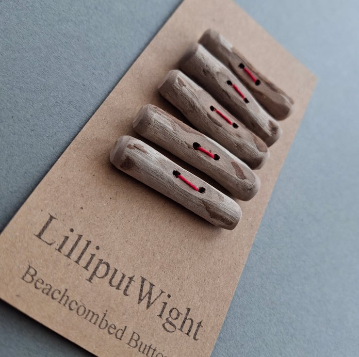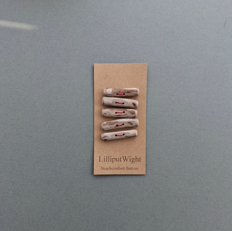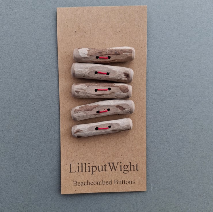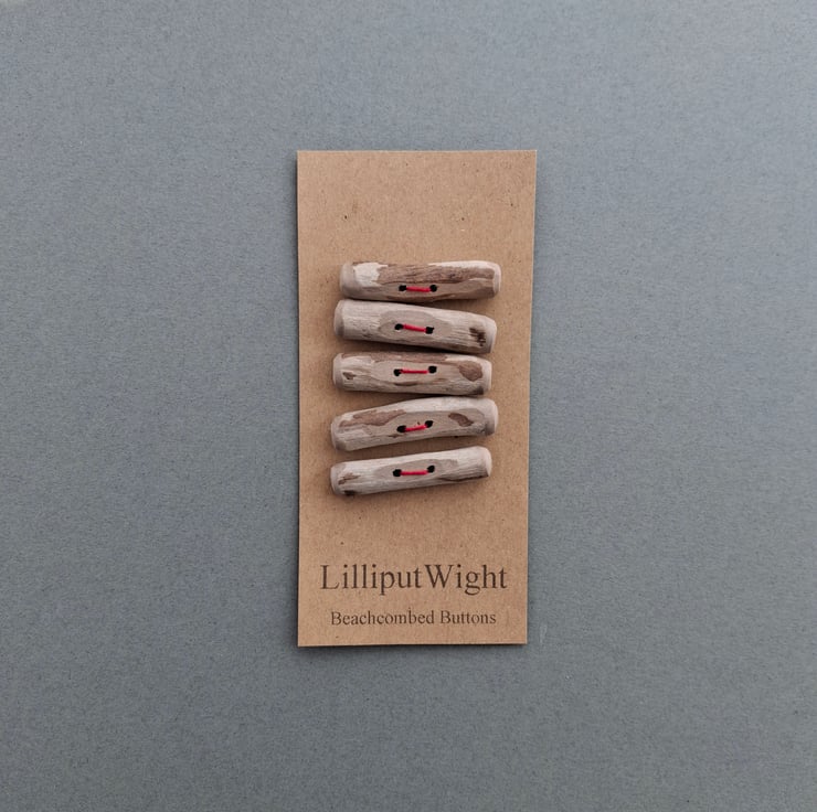 This set of five toggle style buttons has been handmade from driftwood collected from the beach close to my home on the Isle of Wight. These natural wood buttons would be perfect on a squashy garter stitch cardigan.