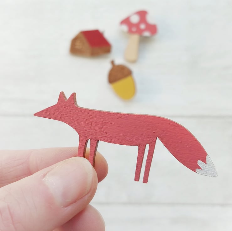 This adorable laser-cut wooden fox brooch is inspired by my series of Forest diorama pictures, and my love of animals, nature and folklore.