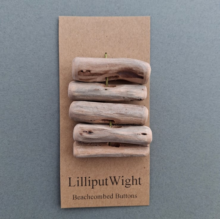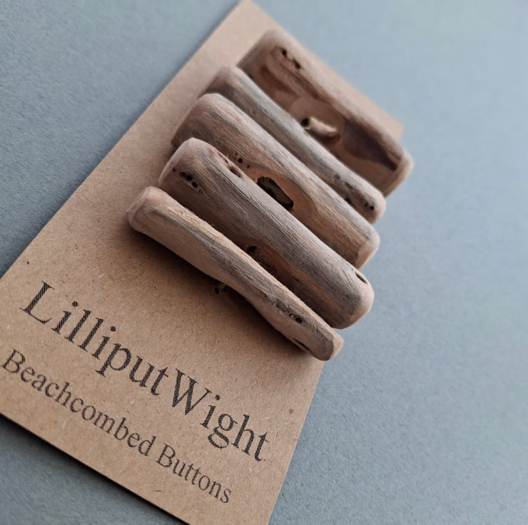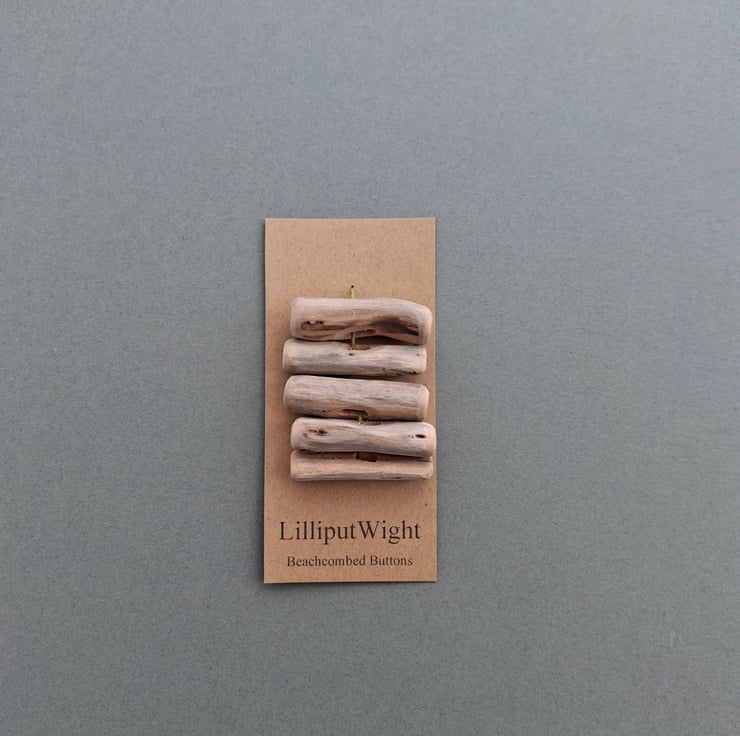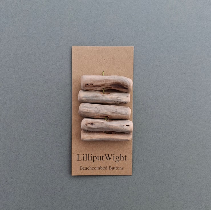 These buttons have been handmade by me in my dad's shed. The driftwood has been collected during walks on the beach before being washed and dried and making the short trip to the shed.