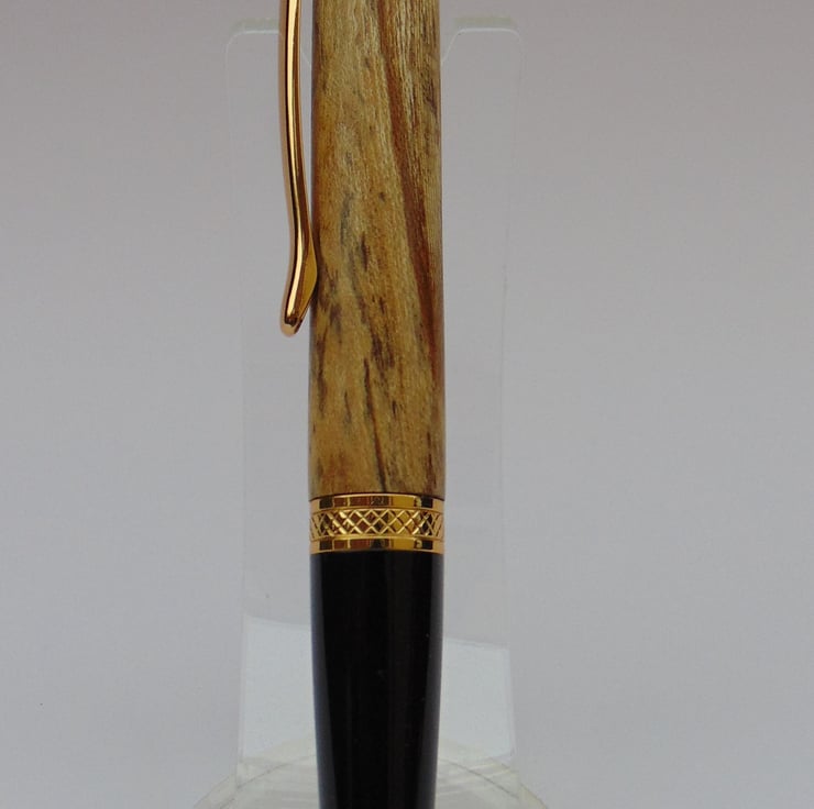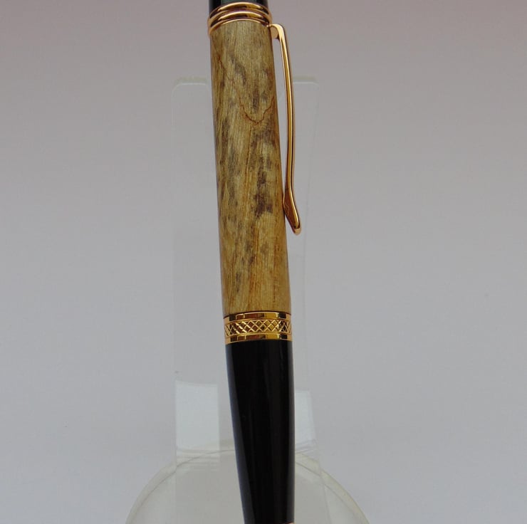 This twist mechanism pen has been made using stabilised Butternut from USA. The patterns in the wood are due to spalting, which is when the wood starts to decompose. However before the wood is useless the wood is dried and then preserved in resin. The wood has been turned, sanded and polished, before affixing the pen mechanisms.