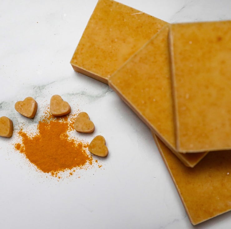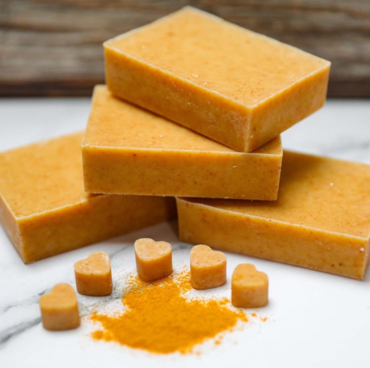 Turmeric added to soap has many benefits such as skin brightening, reduces blemishes and has healing properties. Turmeric also contains cur cumin which can soothe irritated skin and help with skin conditions such as psoriasis and eczema. Its antibacterial and wound healing properties can help treat acne-prone skin and reduce redness. CPSR approved. Approx 100g.