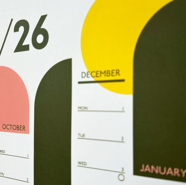 Muted pinks, green and a pop of yellow palette that suits most interiors a nod to mid-century design, this clean but colourful wall planner will add a life to any blank wall whether in your home or office.