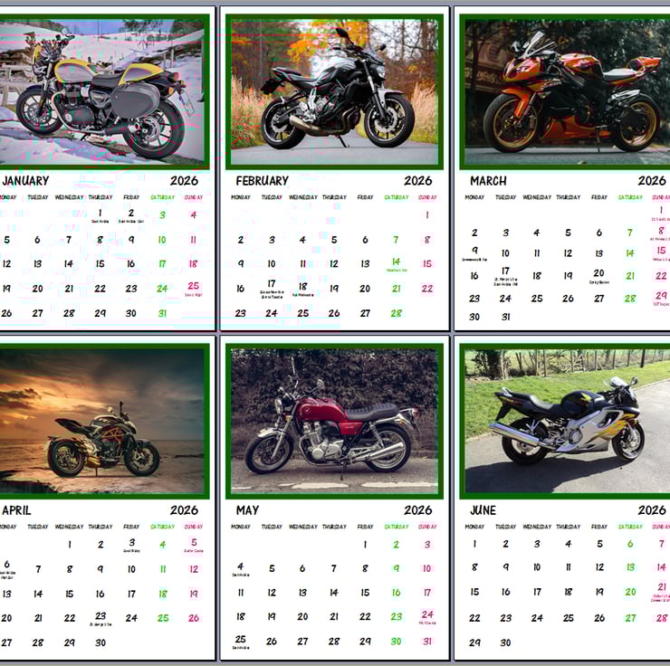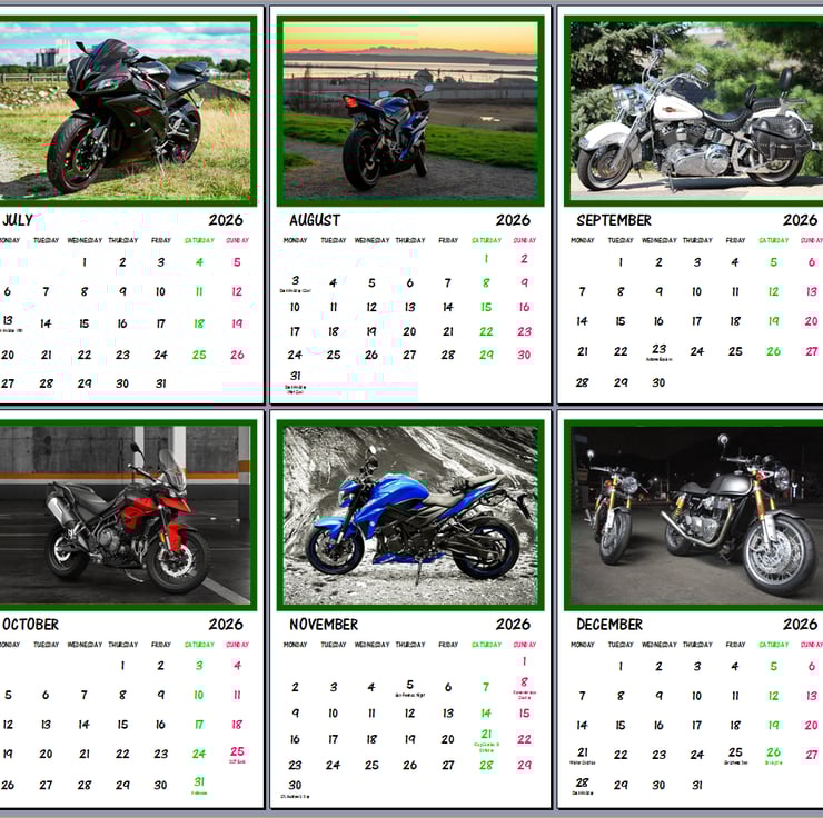 2026 A4 Calendar Motor Bikes Themed