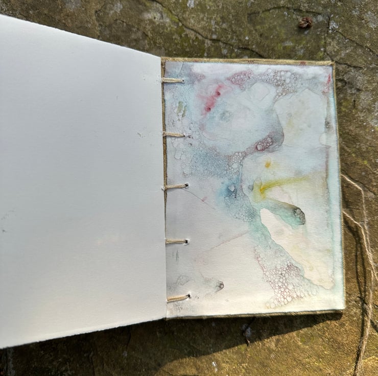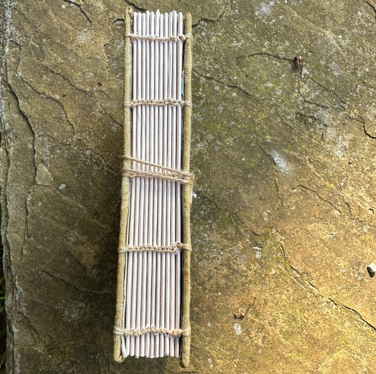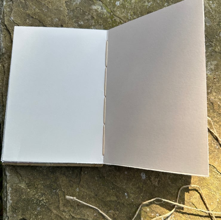 A beautifully hand stitched, Coptic bound, 11 signature journal containing 88 pages of acid & lignin free cartridge paper.