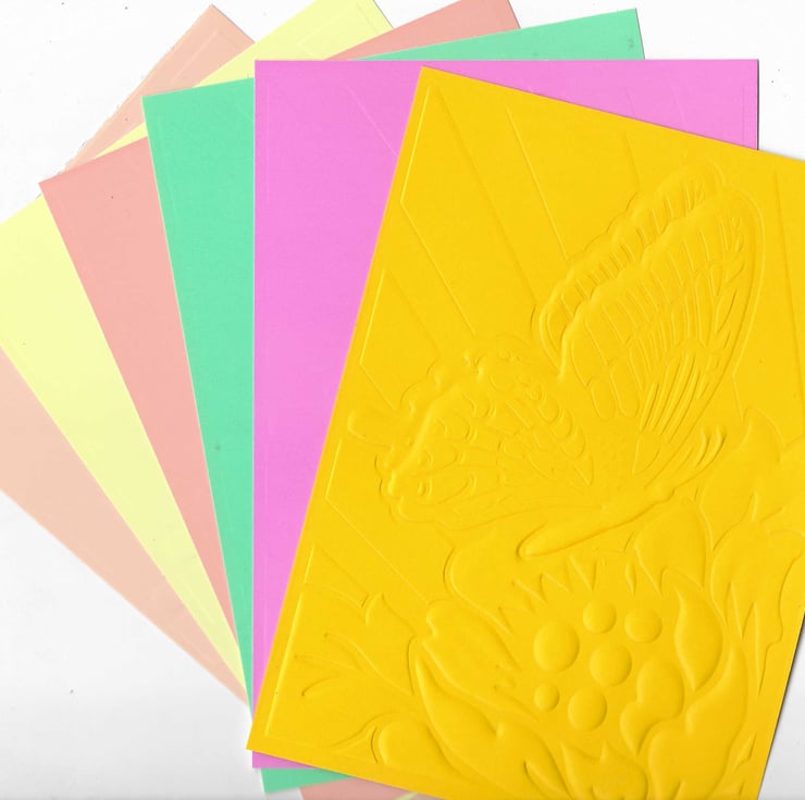 Embossed Card & Paper. 10 Sheets. 5"x7". Assorted Colours. Butterfly (24)