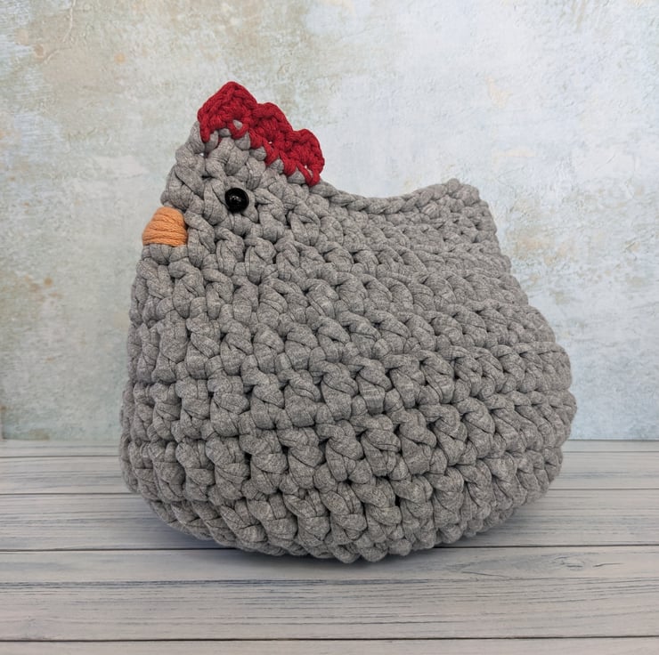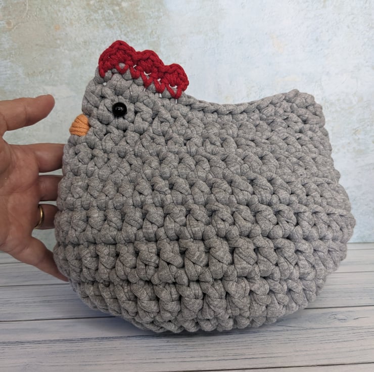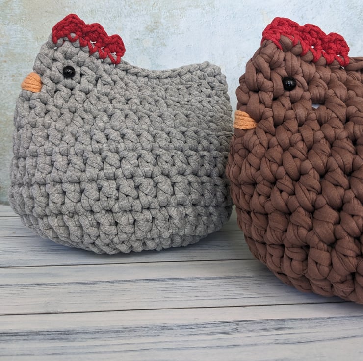 The brown chicken is ready to post but the light grey chicken has been sold. I can make one to order but please note that this will take up to an additional 7 days from the order date.
