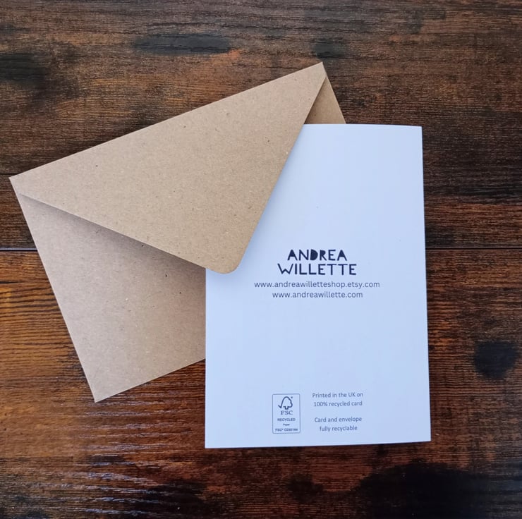 Comes with kraft envelope for a lovely rustic finish; made from 100% post consumer waste, sustainably sourced, carbon neutral, and made with wind power.