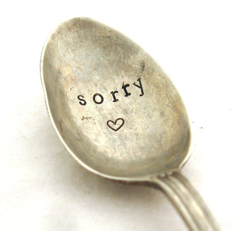 A little vintage coffeespoon hand stamped with the single word 'sorry' and a little heart. Say it with a spoon - it lasts way longer than flowers!