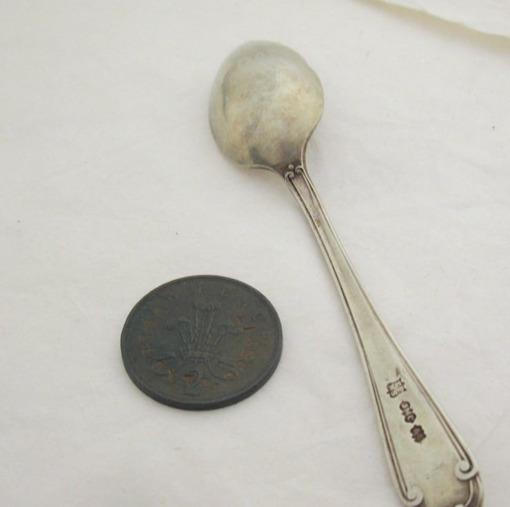 You will receive the spoon shown in the pictures. It is about 12cm long, and it's vintage and pre-loved so it has lost a lot of its original silver plating, although this doesn't affect its efficacy as a coffee spoon at all. It's in the bargain bin anyway.
