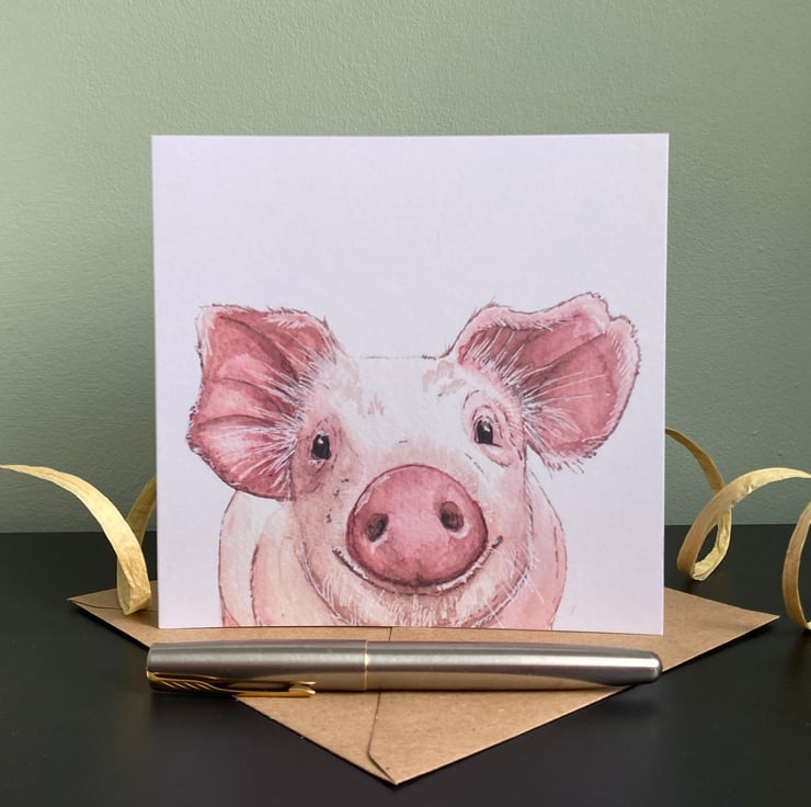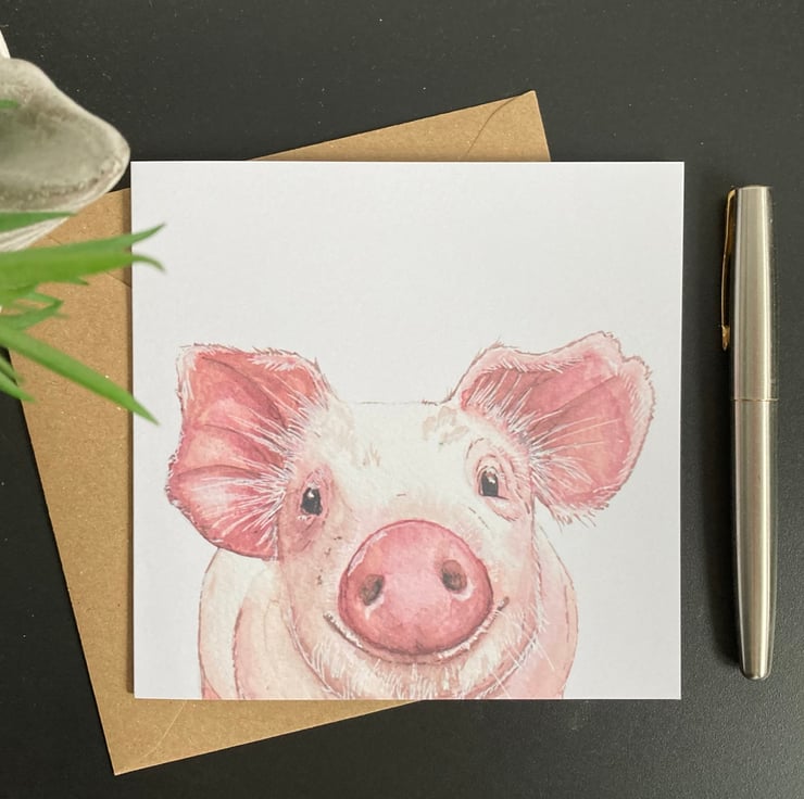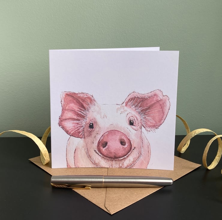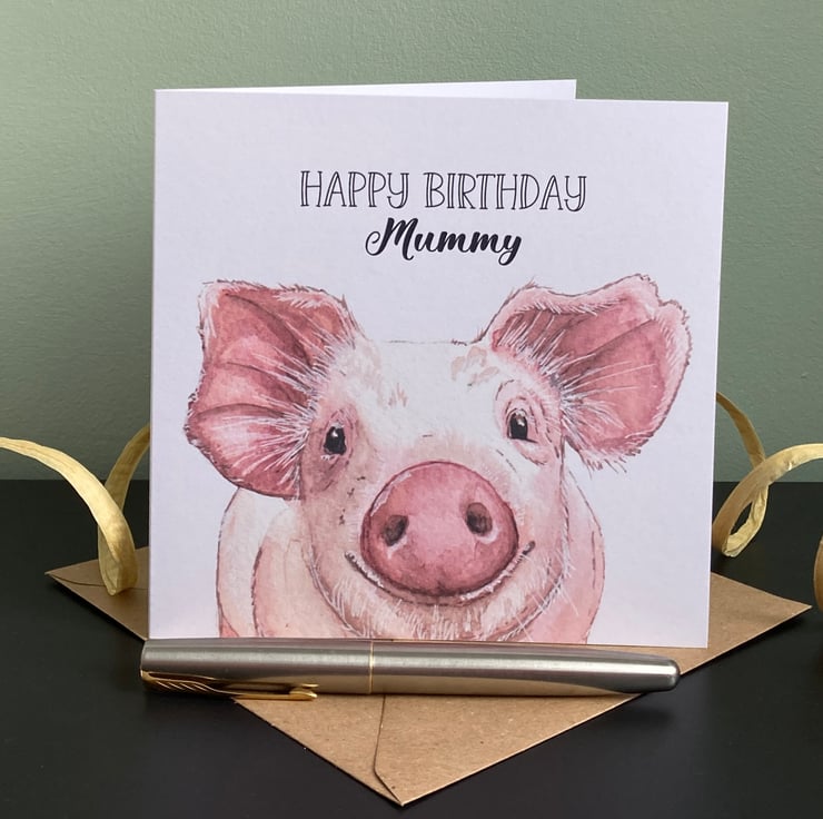 Pig Birthday Card. Personalised or blank Piglet Card for Pig lover.