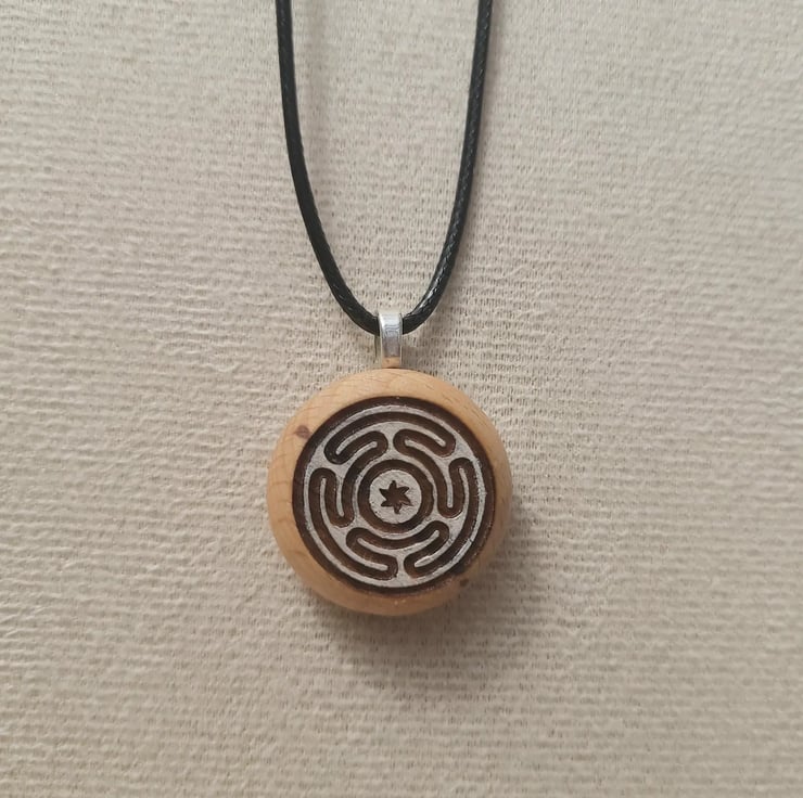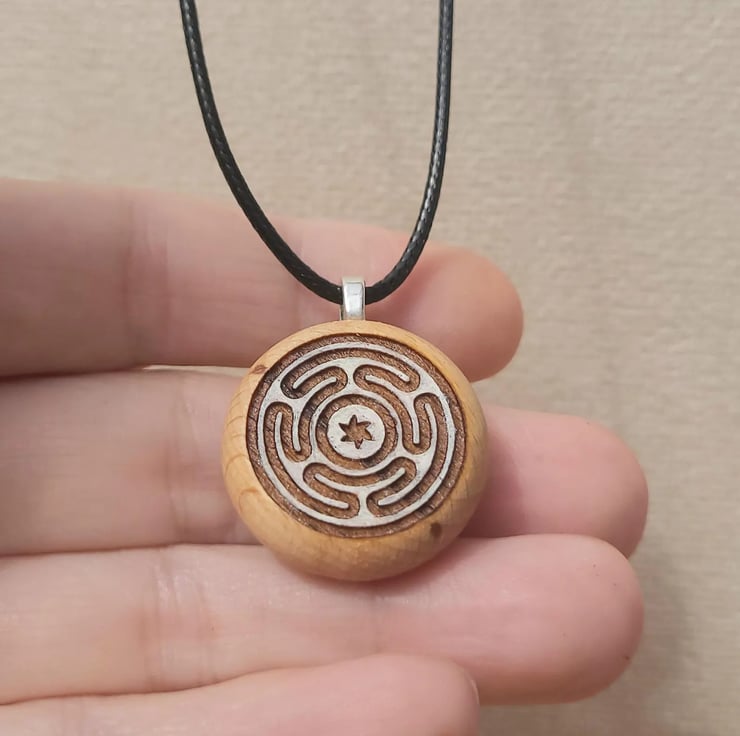 Hecate’s Wheel Pendant – Laser Engraved Beechwood Necklace