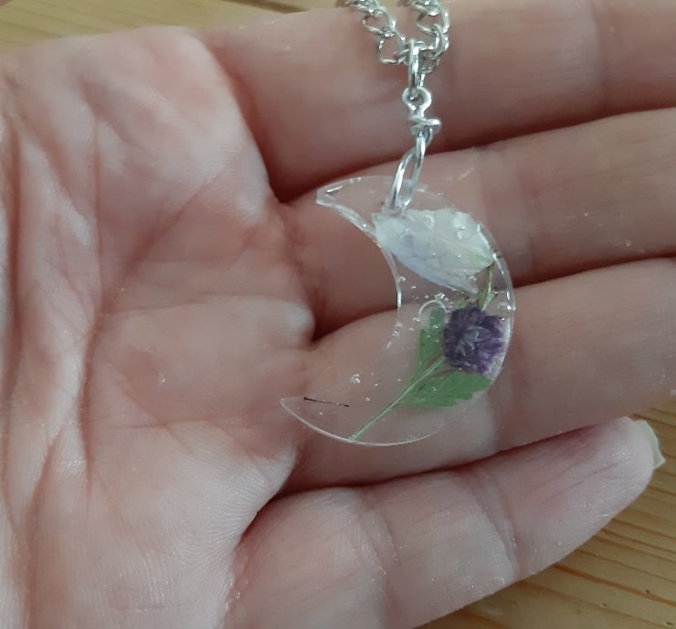 This eye-catching resin pendant, with dried flowers set inside, was made by carefully building up layers of UV resin and curing one layer at a time. It's perfect for the summer months and ideal for everyday wear.