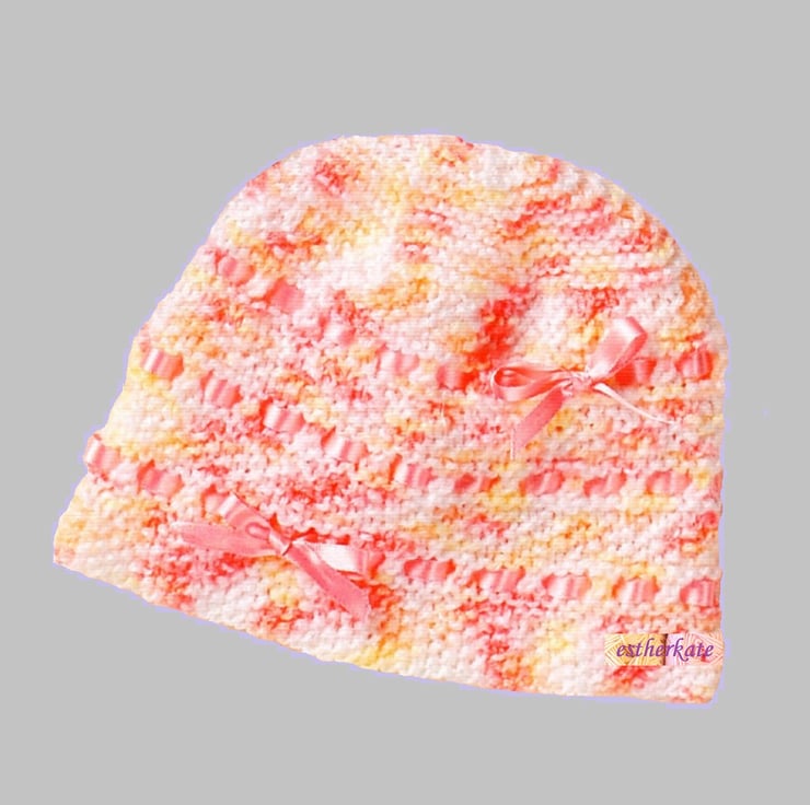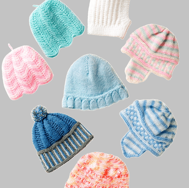 This hand knit PATTERN is for a set of hats for baby. To fit tiny baby to 12 months. Knitted in double knitting yarn using 3.25 mm and 4 mm knitting needles.