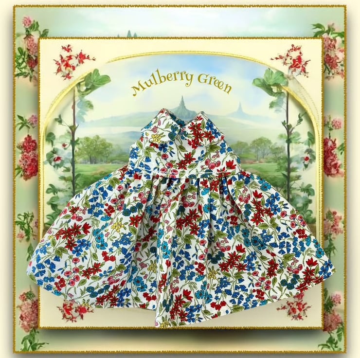 A beautiful dress in Liberty ditsy floral fabric, to fit the Mulberry Green characters. The dress is made from best quality designer cotton and has a Peter Pan collar and a lined bodice.