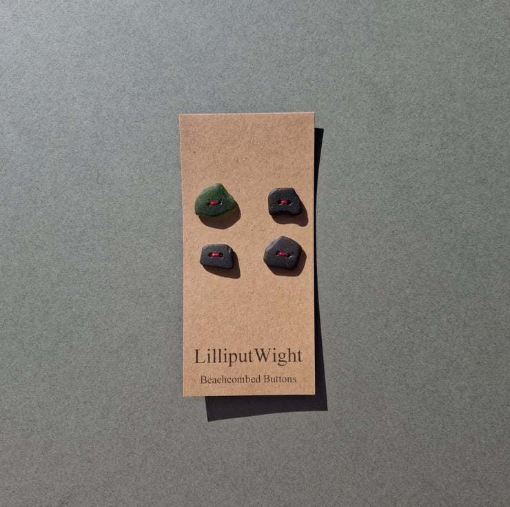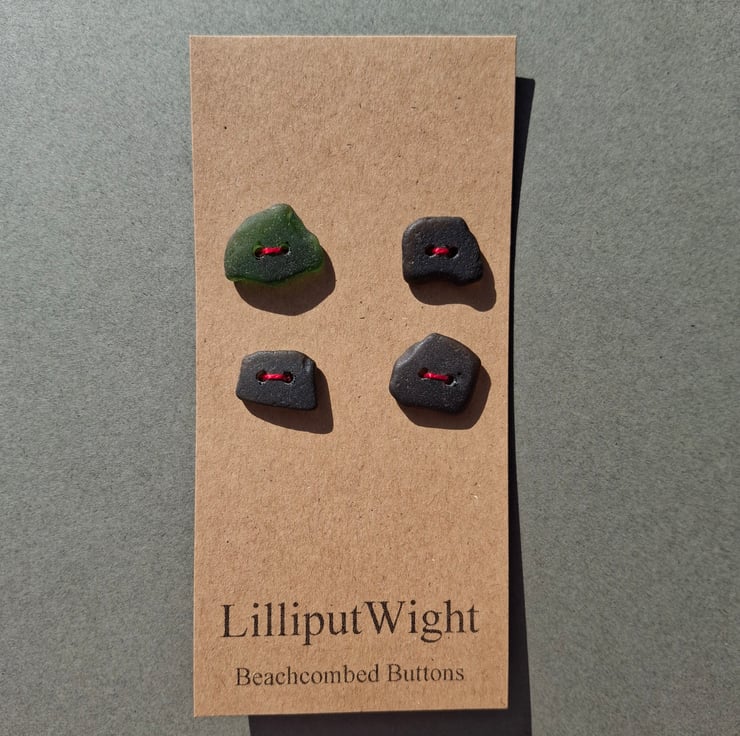 These buttons have been handmade from genuine green sea glass that has been collected on the beaches of the Isle of Wight.
