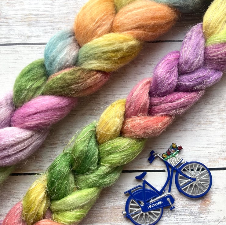 You will also receive 50g of a 50/50 blend of Polwarth and linen.
