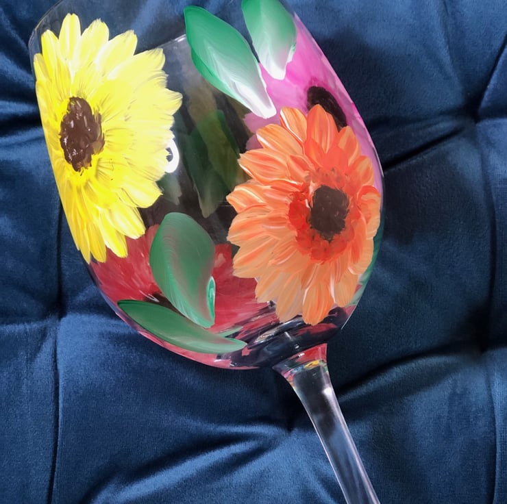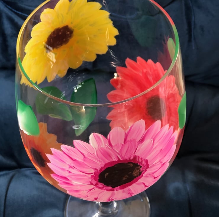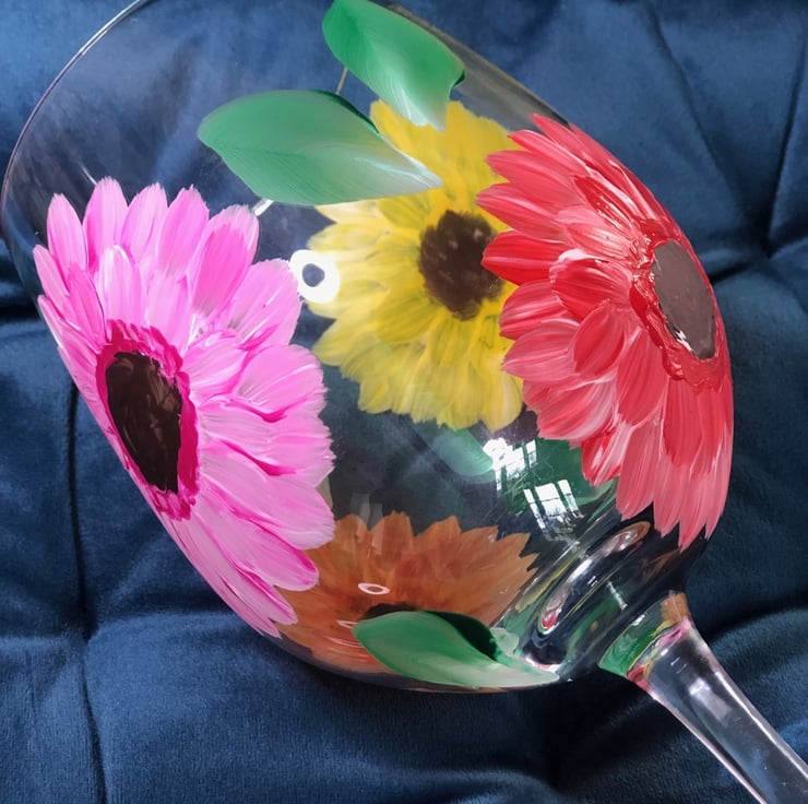 Looking for a truly special gift? This charming Hand-Painted Gerbera Wine Glass is sure to delight! Featuring a beautiful, intricate gerbera design, it's paired perfectly with a matching greetings card. Designed for everyday enjoyment, this unique glass is both usable and hand washable, making it a thoughtful and lasting present. All my glassware is individually hand painted in my studio and is unique.