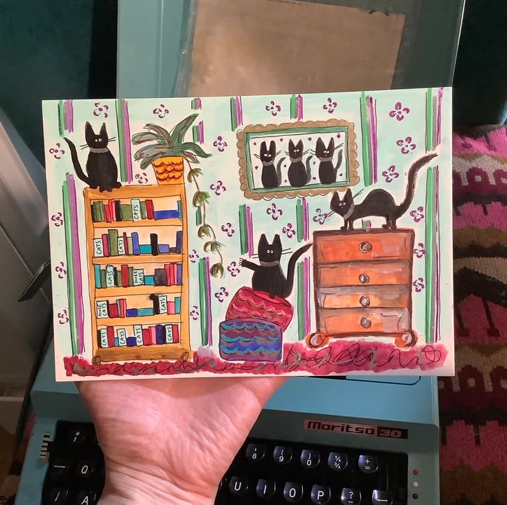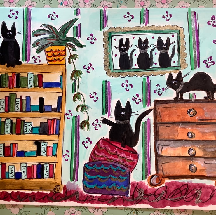 This is an original painting on card. It measures 8x6 inches. Perfect for a cat lover.