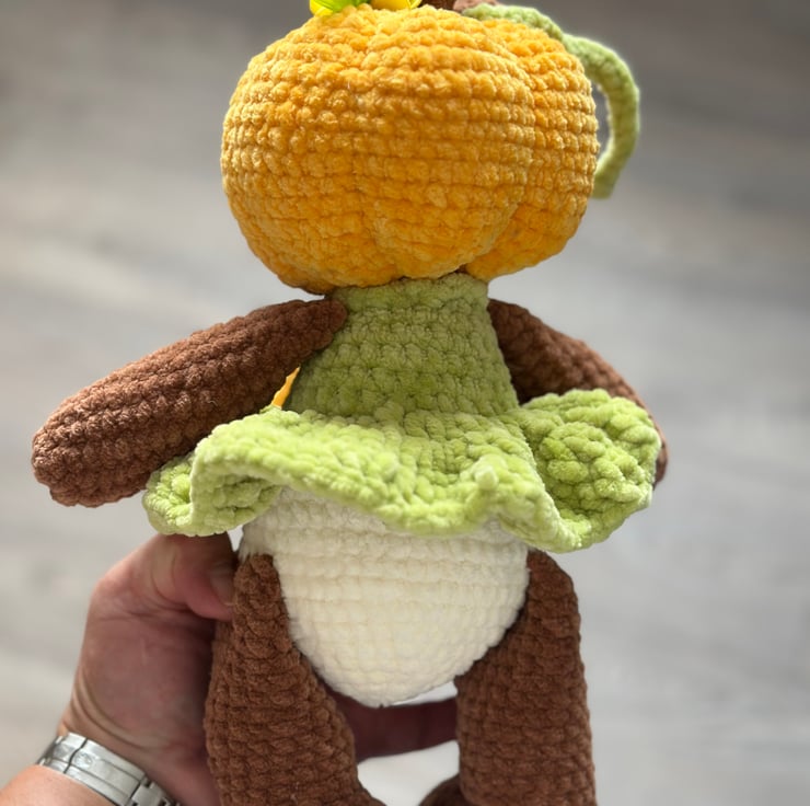 Every intricate detail in the crochet design showcases exceptional craftsmanship, lending a unique and whimsical touch to this festive toy. With its vibrant colors and cozy textures, this pumpkin plushie is not just a toy; it's a charming keepsake that enhances any soft toy collection and brings a smile to anyone's face.