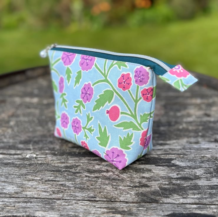 Pretty flower print purse, great for cosmetics / makeup. Equally versatile as a small bag / pouch for your phone / cards / lipstick.