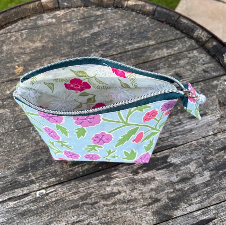 A wash bag / toiletry bag is available in the same fabric from sandiped homemade on folksy.com.