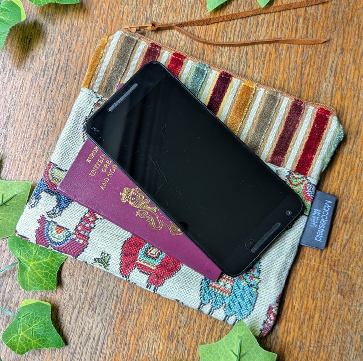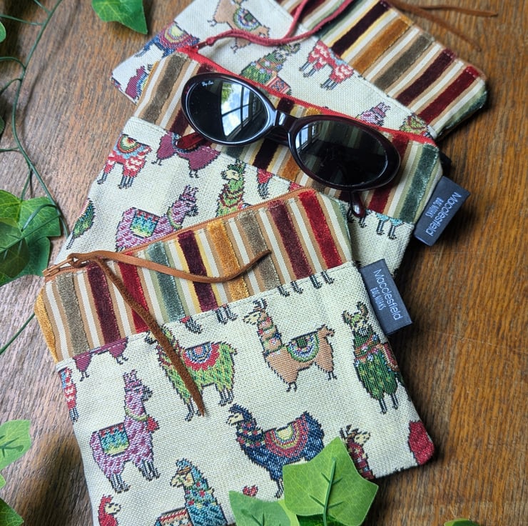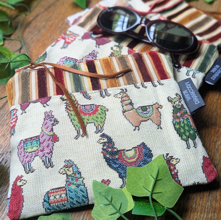 Perfect gift for a lover of llamas - or alpacas! Keep all those small things in the bottom of your bag tidy, this eco-friendly pouch purse, make-up bag or pencil case has been made by using fabric off-cuts from larger projects.