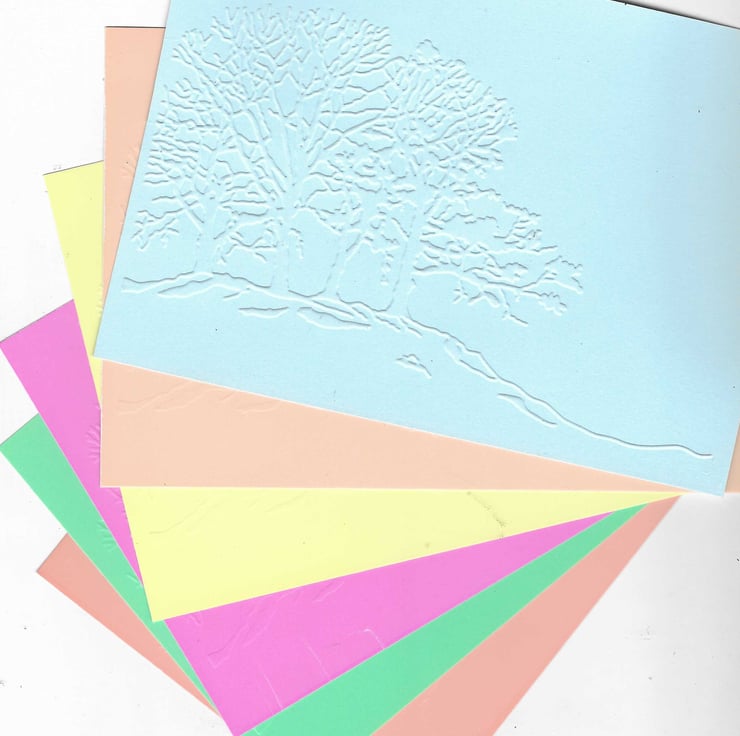 Embossed Card & Paper. 10 Sheets. 5"x7". Assorted Colours. Tree Scene (26)