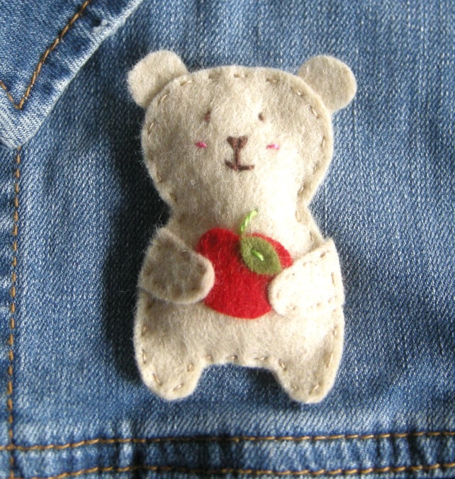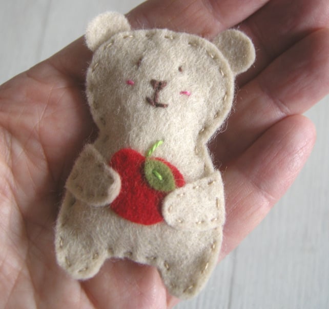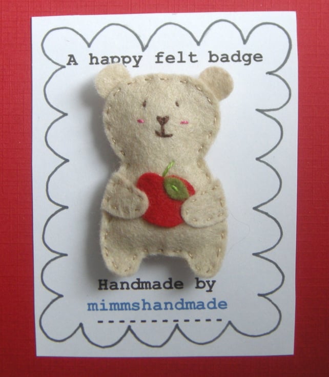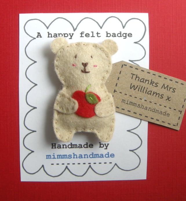 This cute handmade Bertie the bear brooch would make a great gift for a teacher. Bertie bear has his own apple and a cute hand sewn face and comes with a special thank you message.