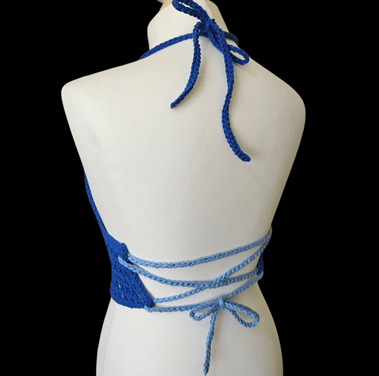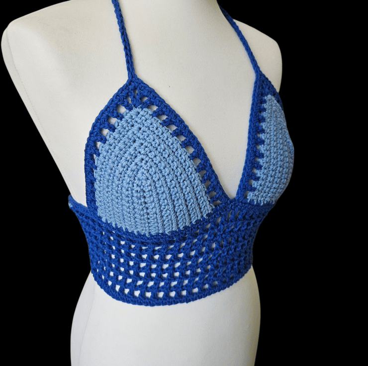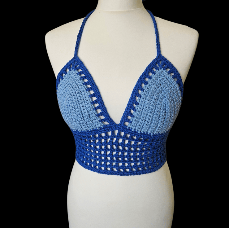 This beautiful bralette crop top has been made using 100% cotton yarn. It's perfect for a hot summers day at the beach, a festival or a summer barbeque.