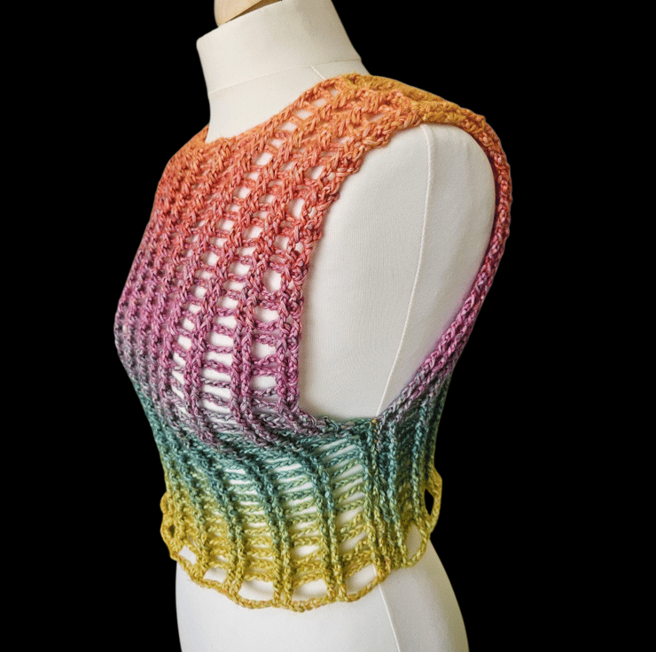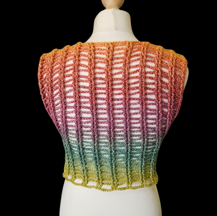 This beautiful mesh top has been made using a cotton acrylic blend yarn (67% cotton 33% acrylic) which makes it beautifully soft while still being cool for the summer. Perfect for a pride celebration or just a happy, sunny summers day.