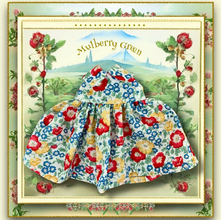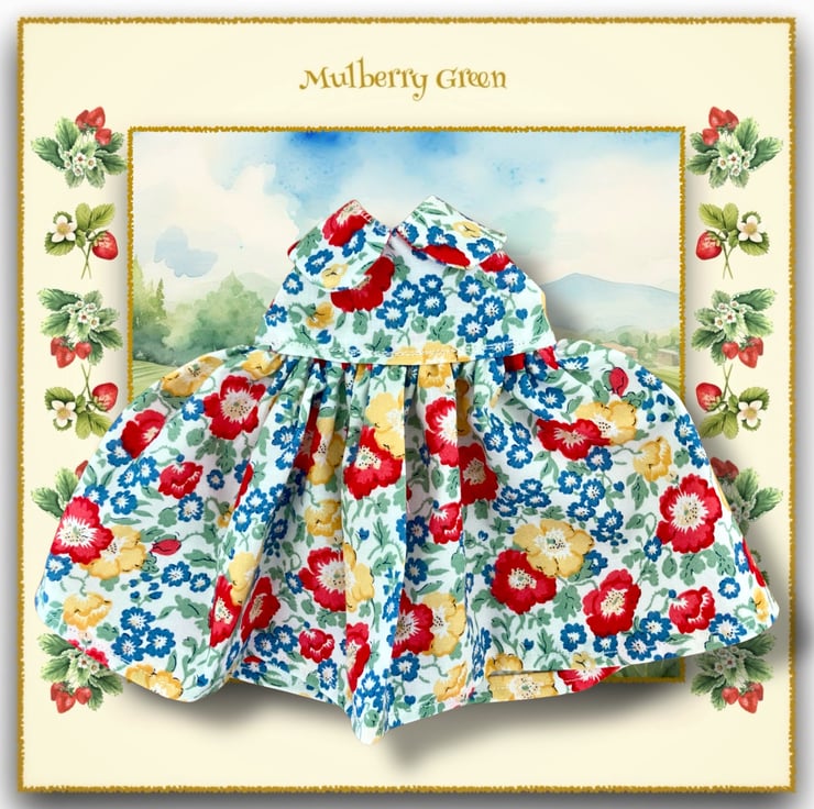 A beautiful dress in Liberty ditsy coastal flowers fabric, to fit the Mulberry Green characters. The dress is made from best quality designer cotton and has a Peter Pan collar and a lined bodice.