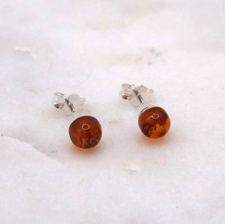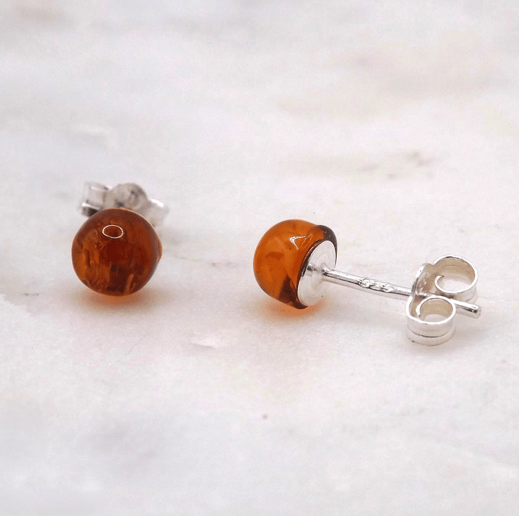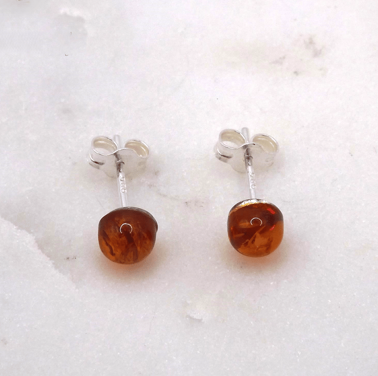 Amber Round Cabochon 5mm. Beautiful golden honey colour with sun spangles. Hardness: 2.5 Mohs.