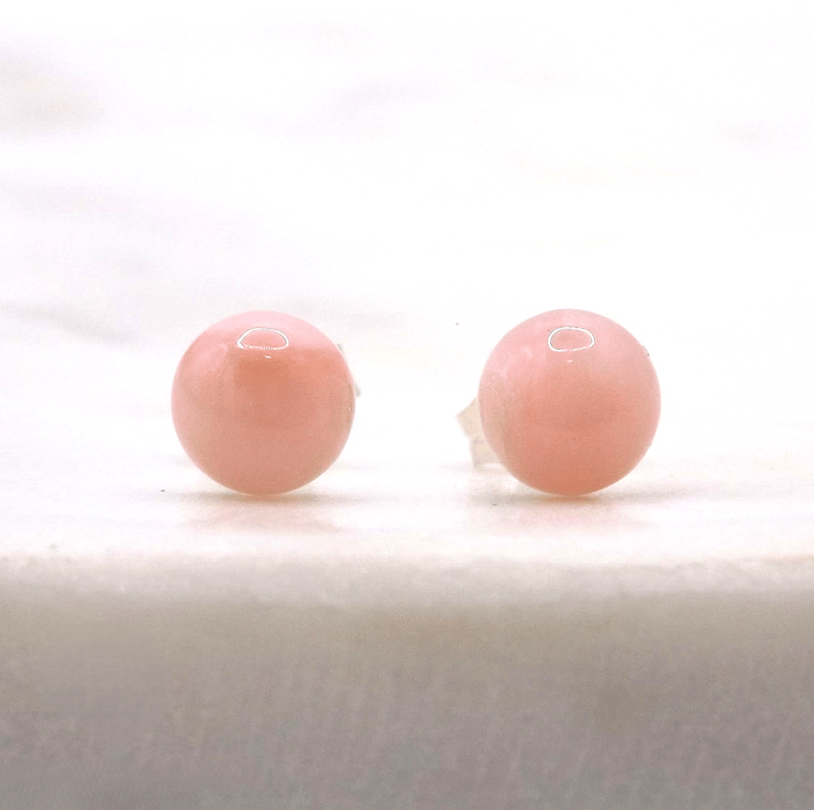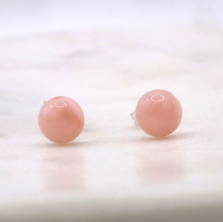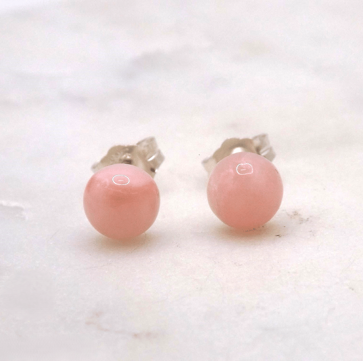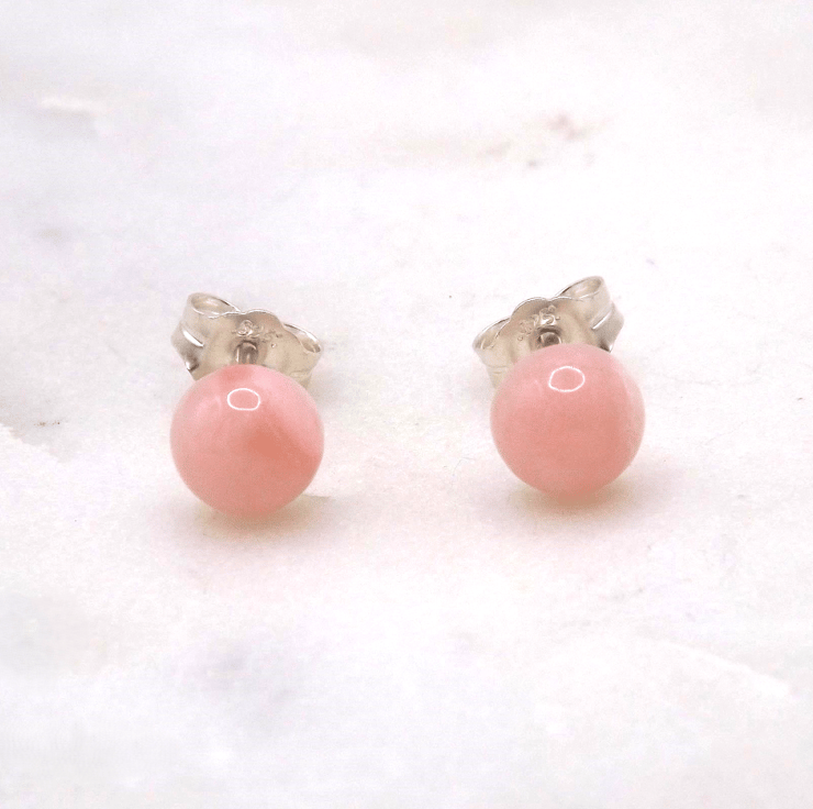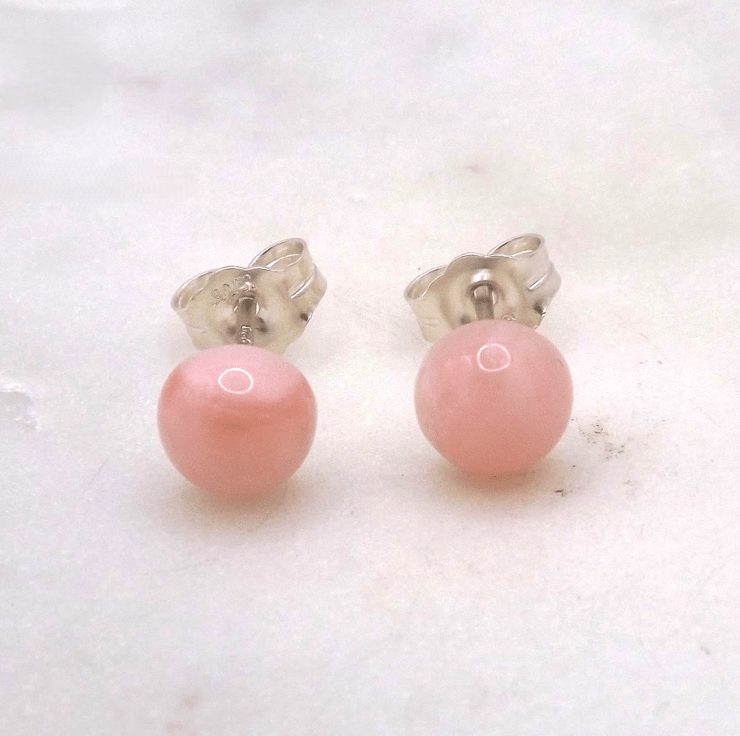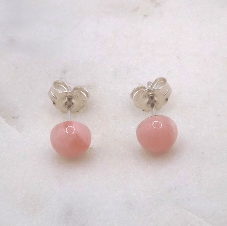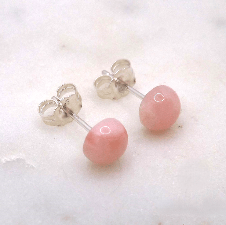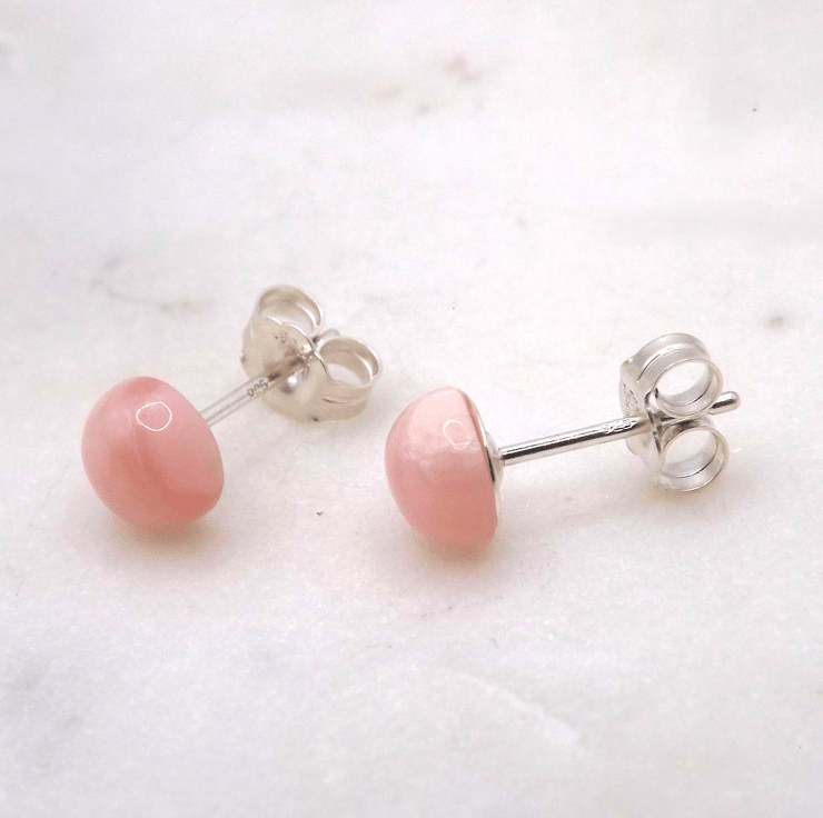 Pink Opal Cabochon 6mm A Quality Gemstone Sterling Silver Stud Earrings.