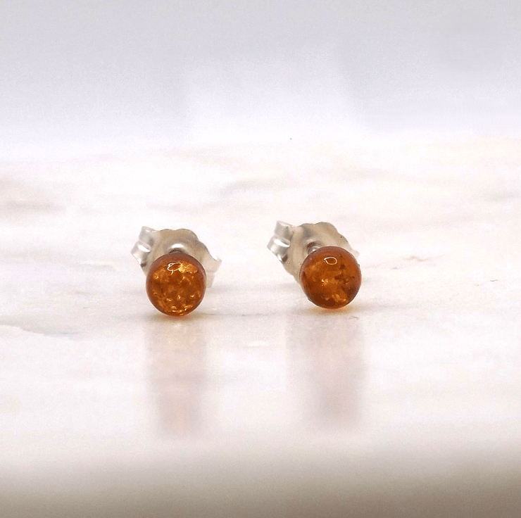 Amber Round Cabochon 4mm. Beautiful golden honey colour with sun spangles. Origin: Baltic coast, Poland. Treatment: heated.