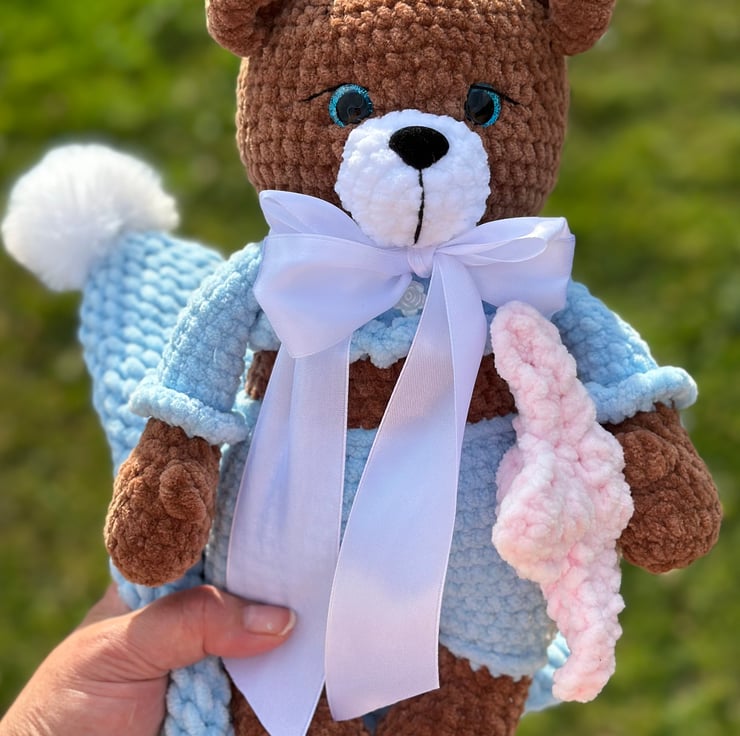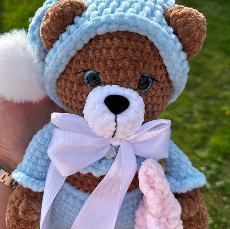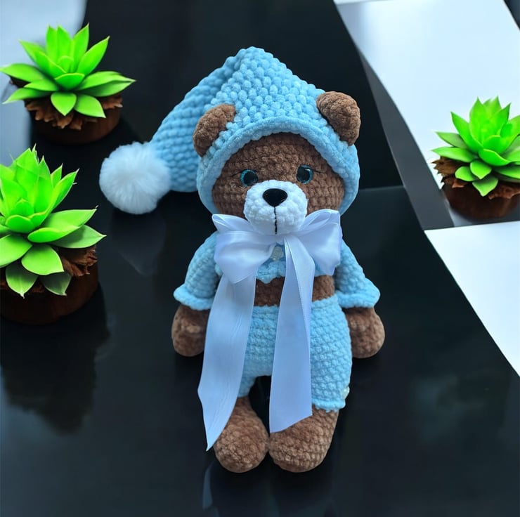 This exquisite handmade crochet amigurumi teddy bear plushie is a delightful addition to any soft toy collection. Crafted with meticulous attention to detail, this charming bear is not only perfect for cuddling but also makes for an ideal companion during playtime. The crochet design imbues it with a unique, artisanal quality, making it a thoughtful and special gift for both children and avid teddy bear collectors.