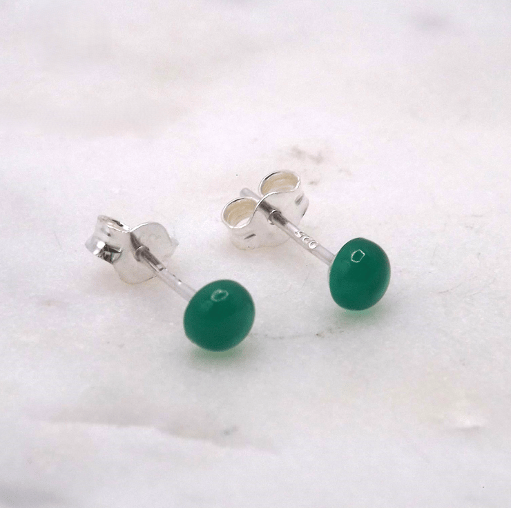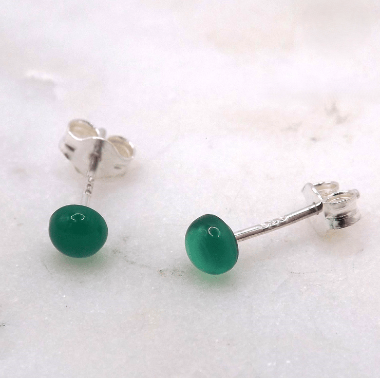 Green Onyx Round Cabochon 4mm. Beautiful translucent emerald green colouring. Origin: India.