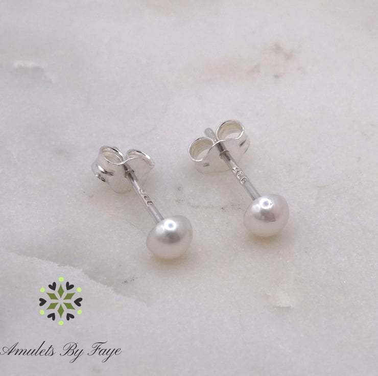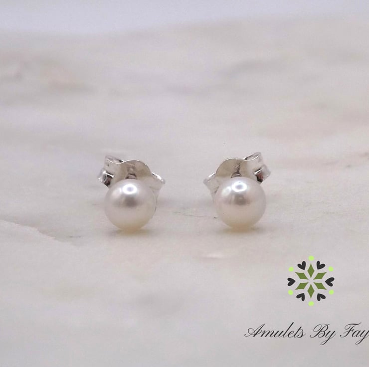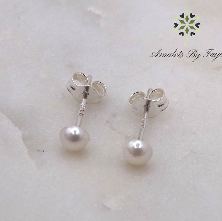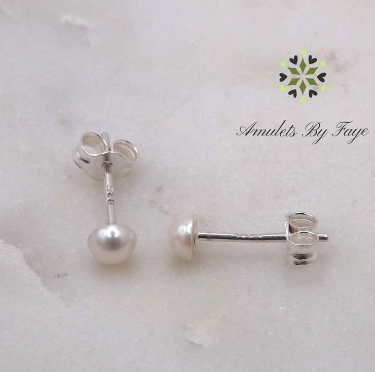 Saltwater Akoya Pearl Cabochon 4mm Gemstones Sterling Silver Stud Earrings.