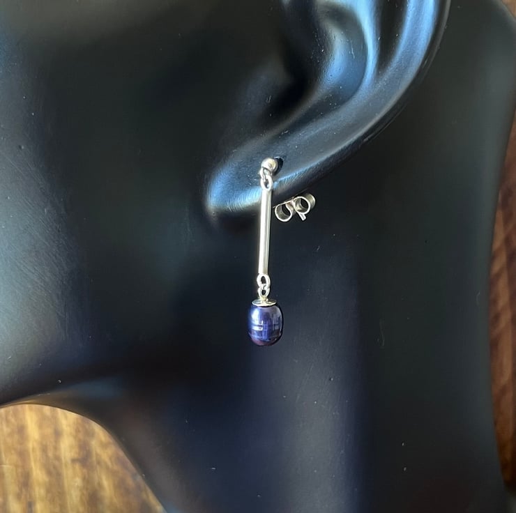 I wanted to create something that felt both classic and a little unexpected, perfect for brides seeking a meaningful “something blue,” but also for anyone who appreciates jewellery with a story and soul. The sleek bar drops were designed to keep the focus on the pearls, letting their unique colour shine while adding a modern, elegant touch.
